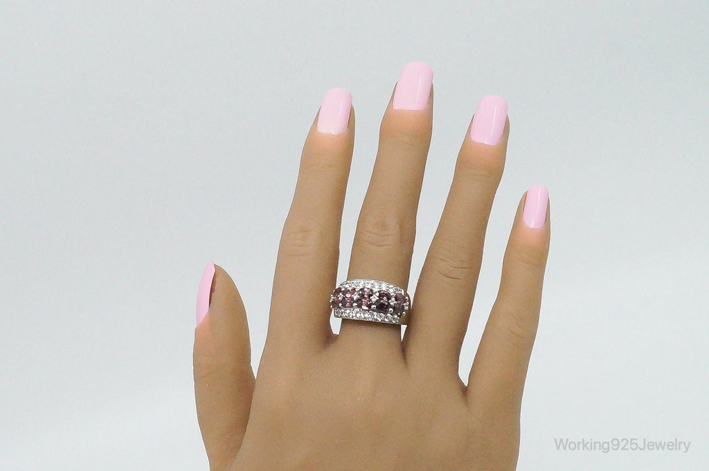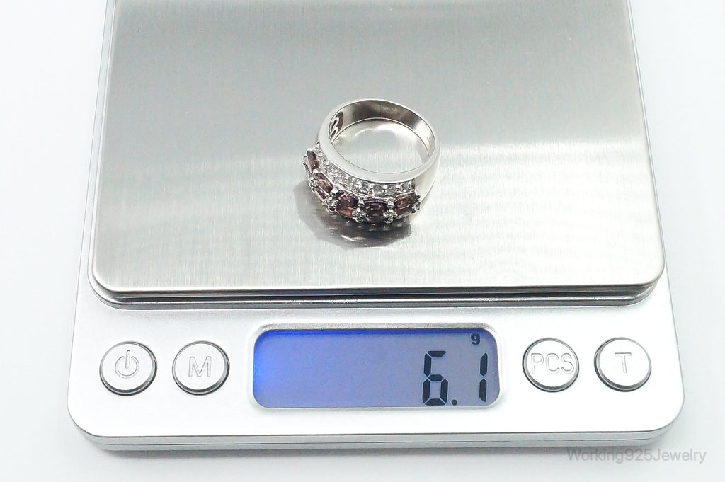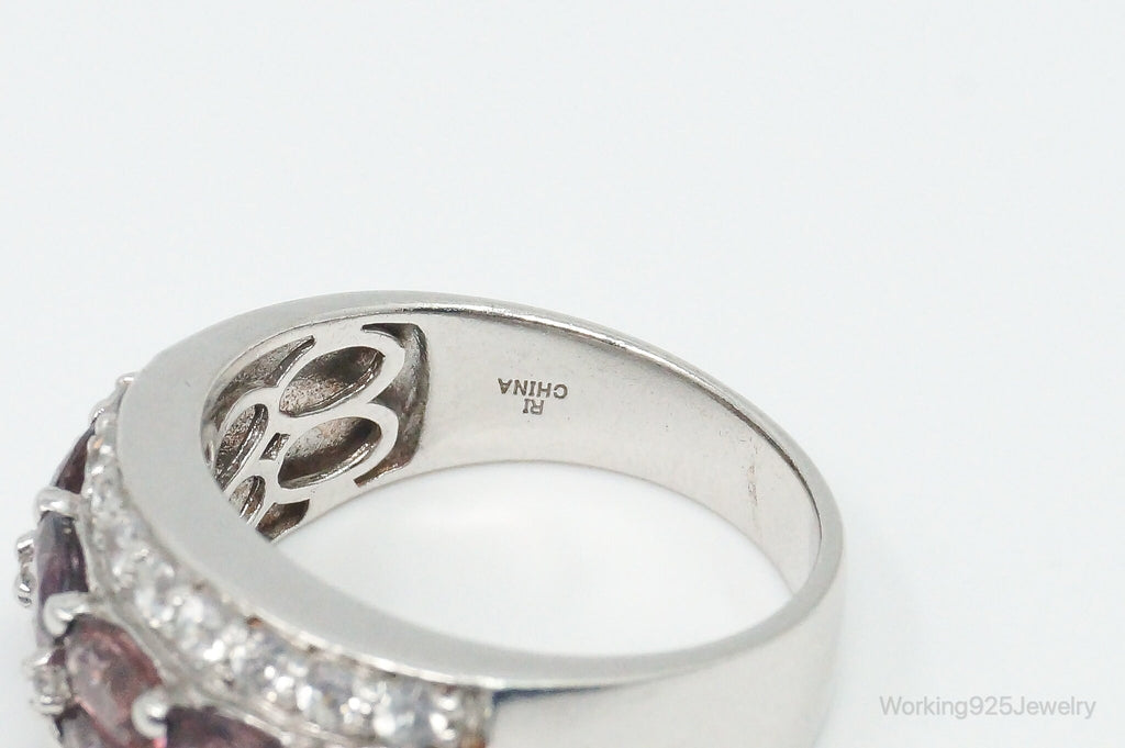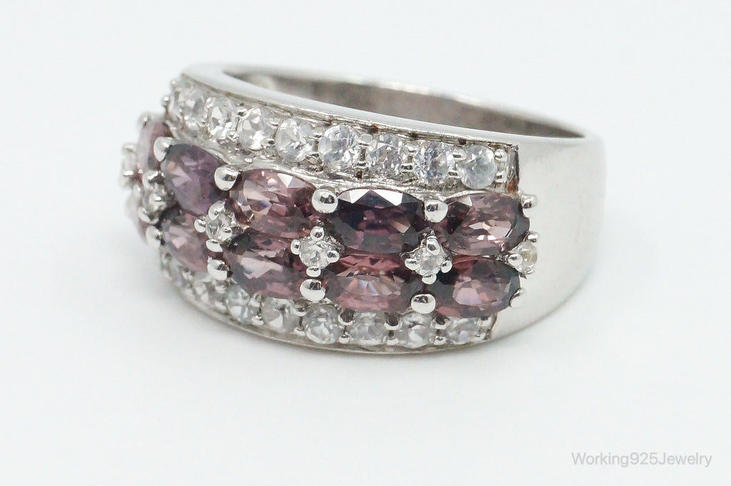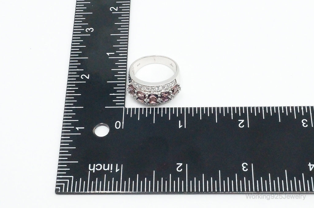 Vintage Amethyst Cubic Zirconia Sterling Silver Band Ring - Size 8.25