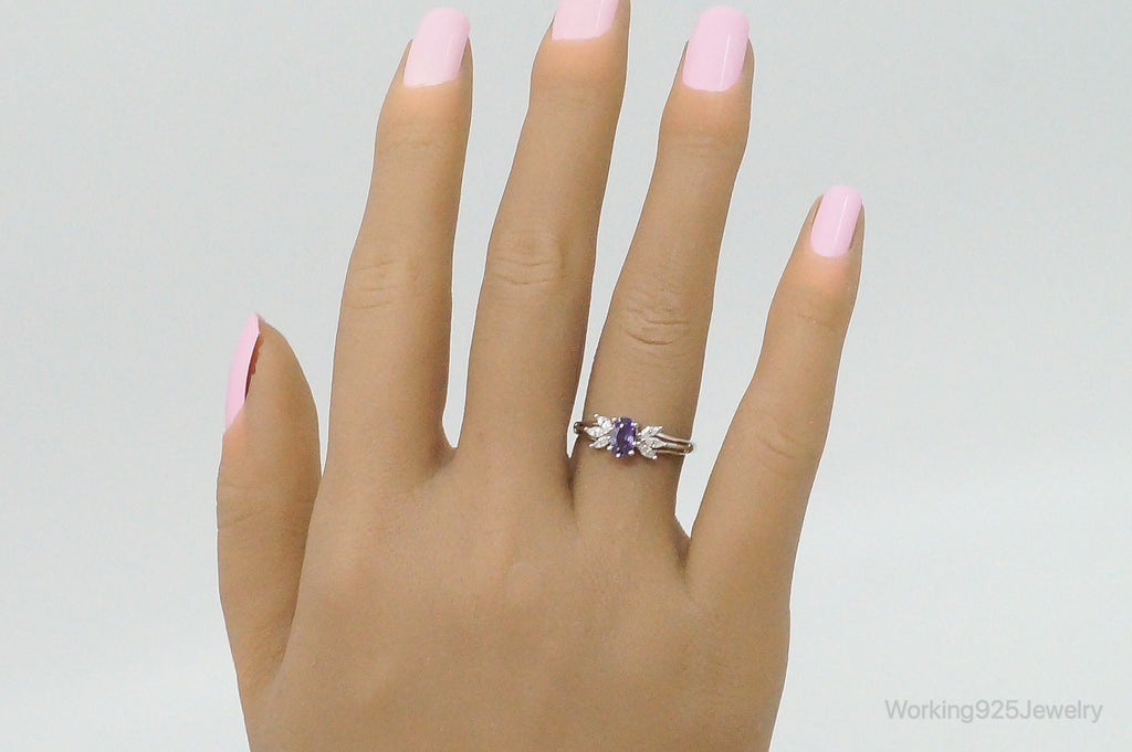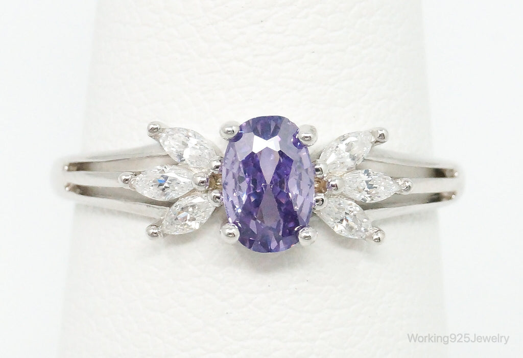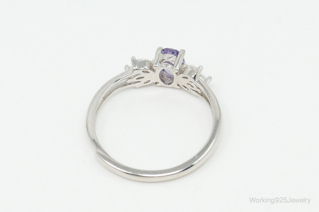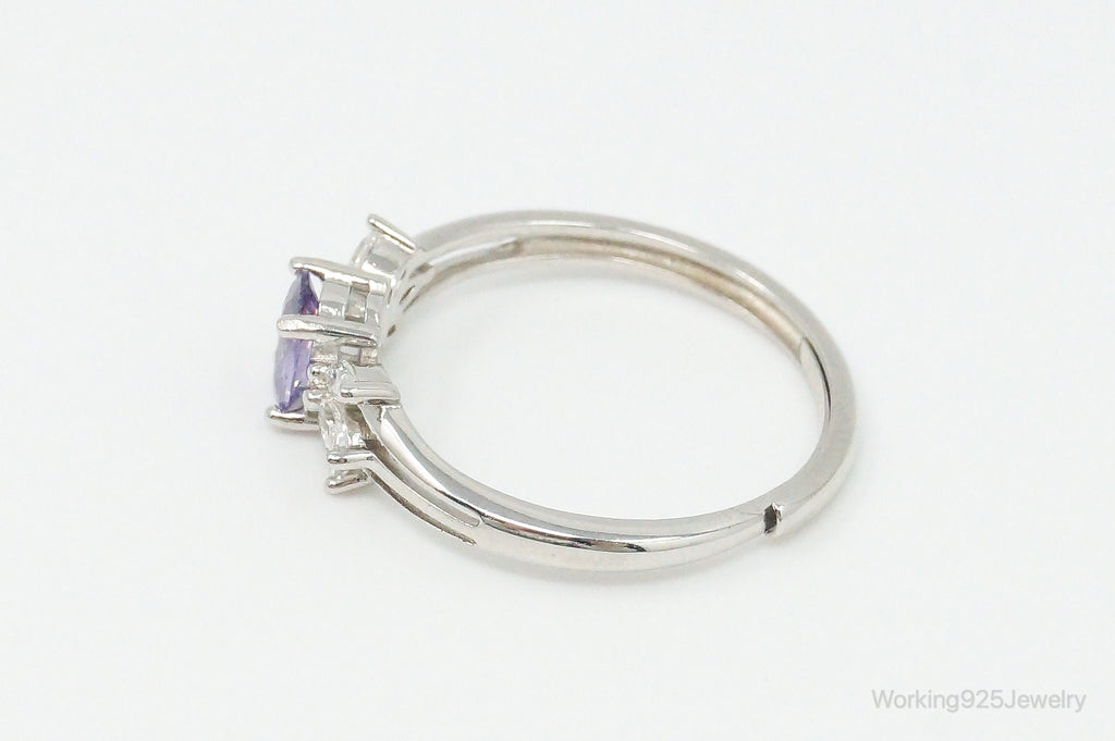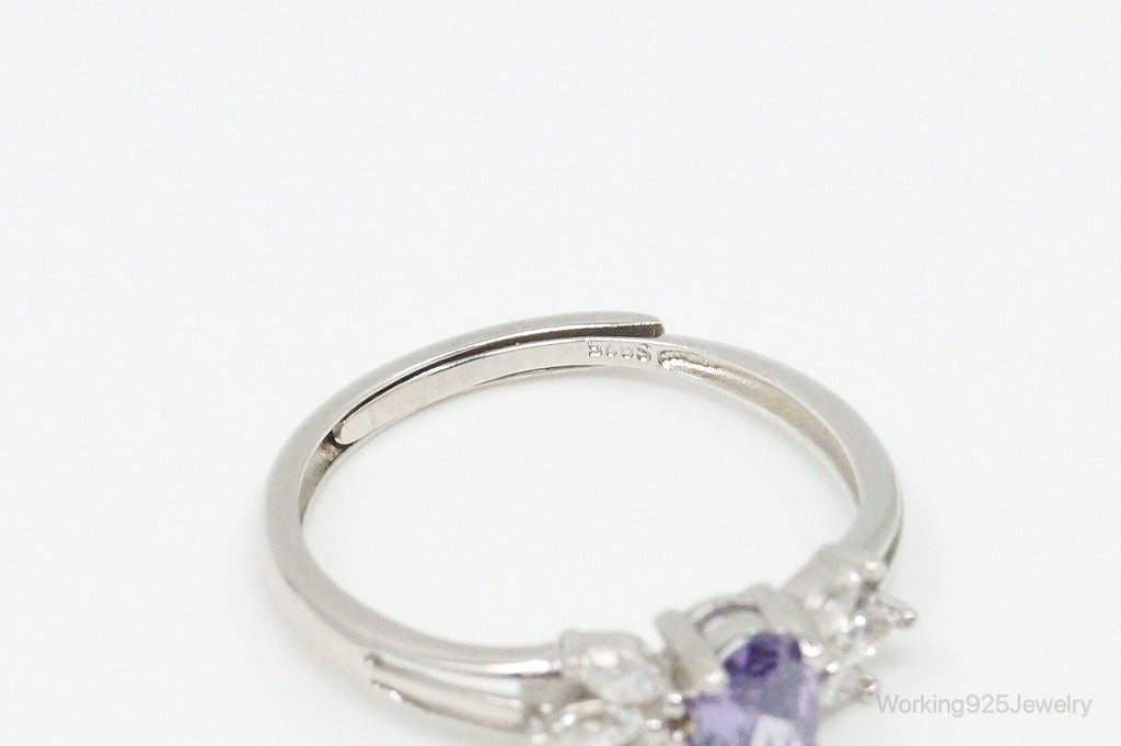 Vintage Amethyst Cubic Zirconia Sterling Silver Ring - Size 6.5 Adjustable