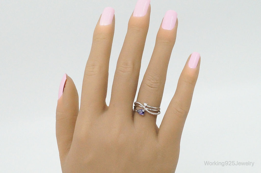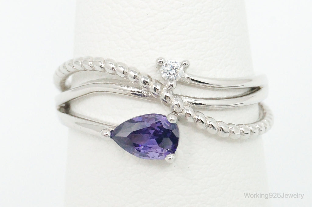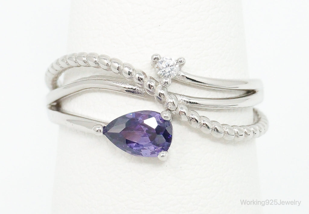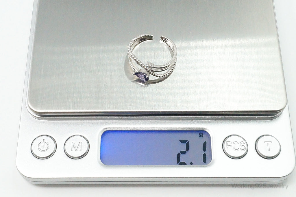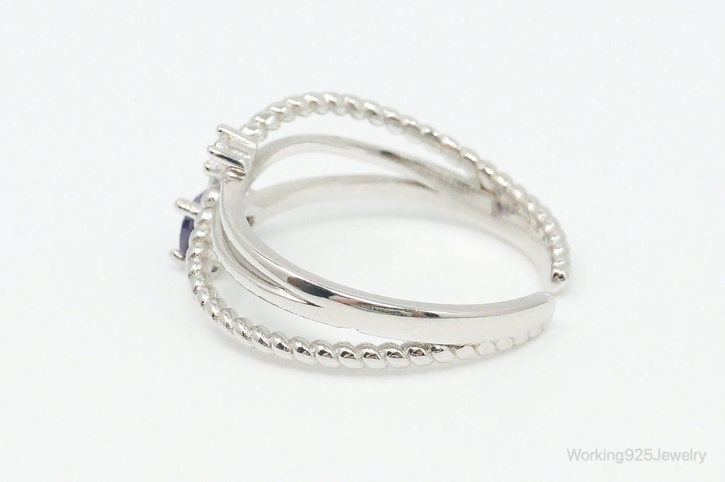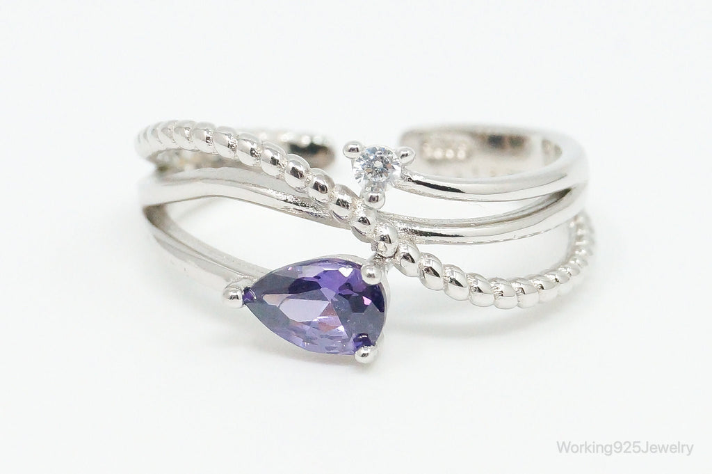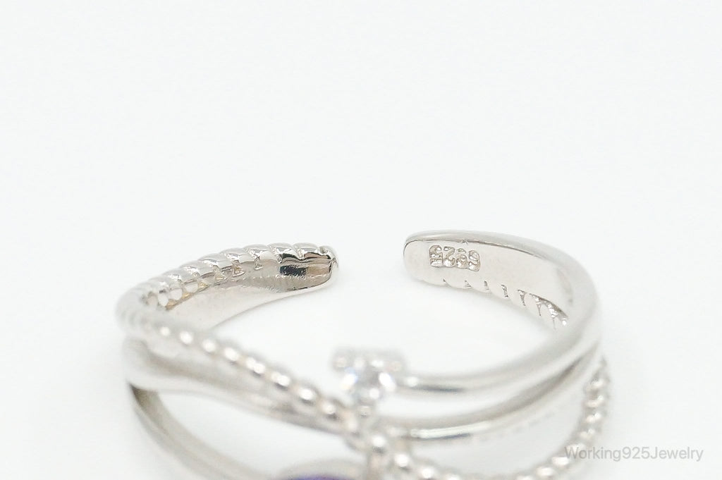 Vintage Amethyst Cubic Zirconia Sterling Silver Ring - Size 6.5 Adjustable