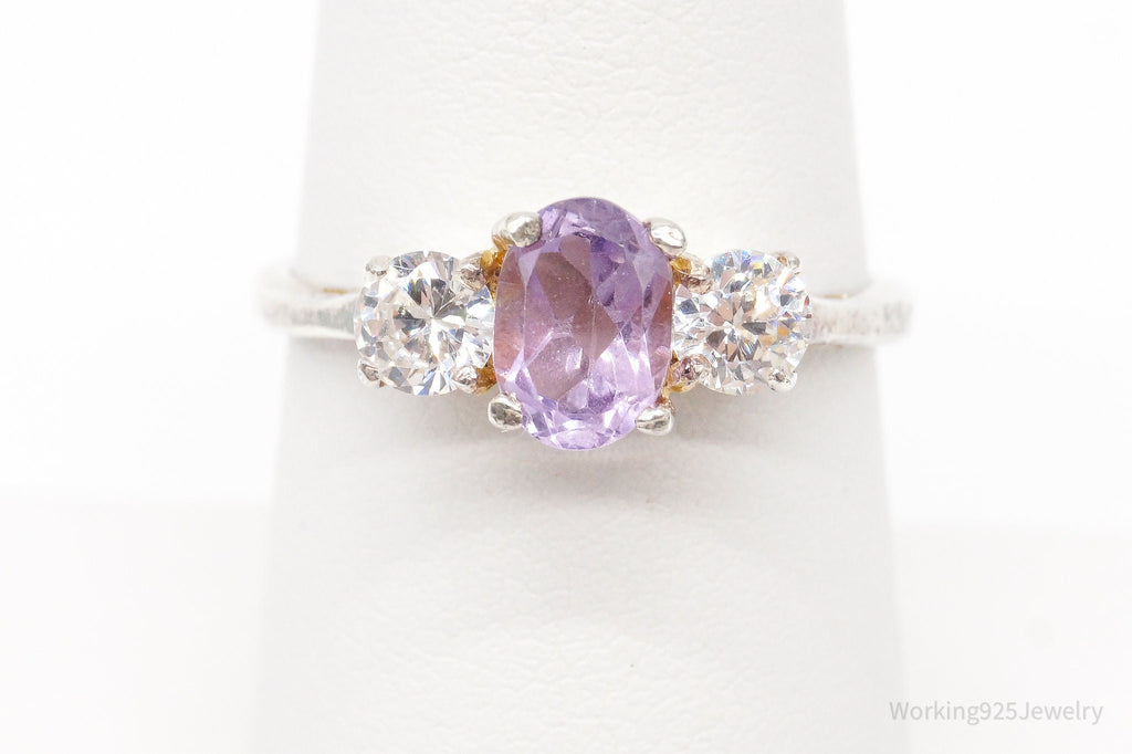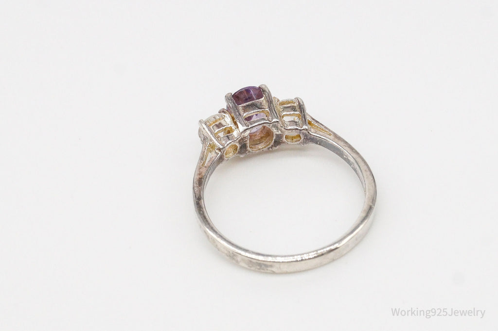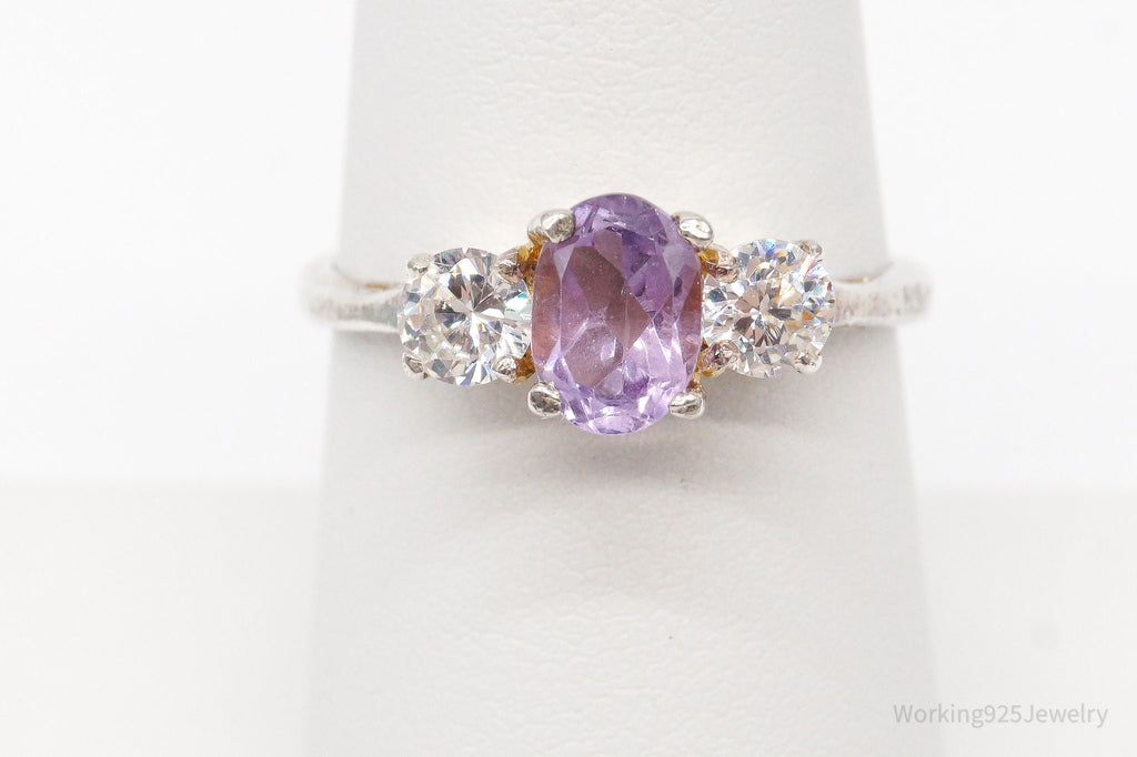 Vintage Amethyst Cubic Zirconia Sterling Silver Ring - Size 7