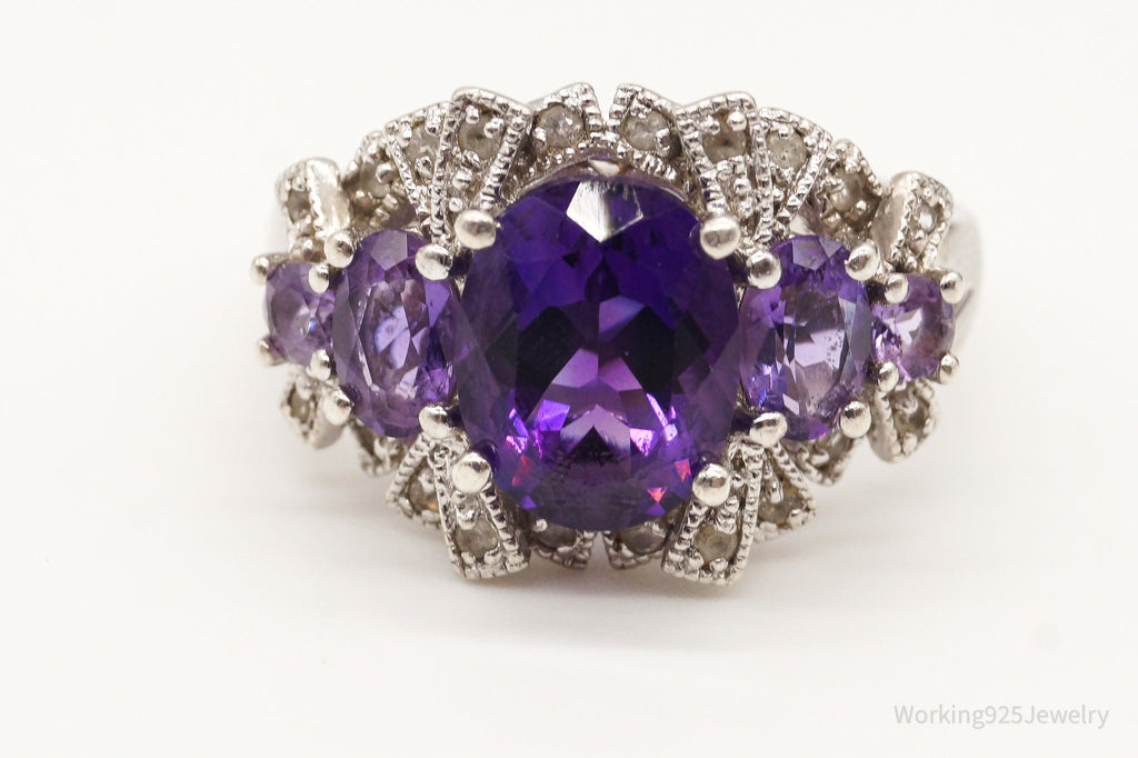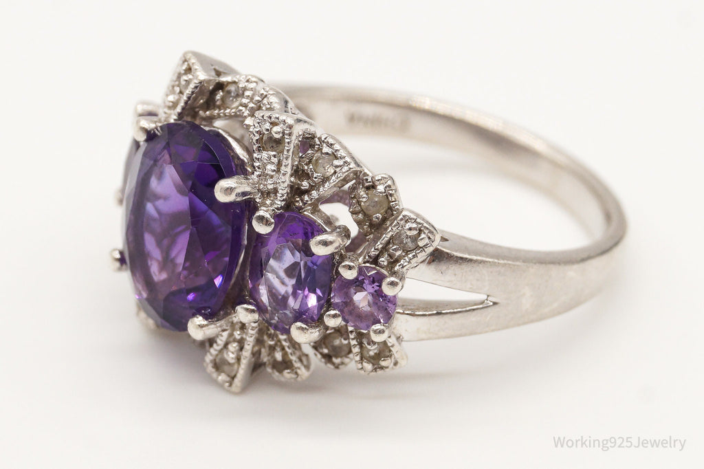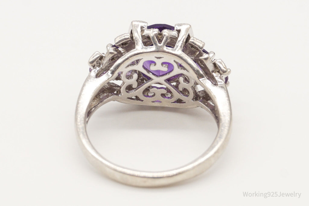 Vintage Amethyst Cubic Zirconia Sterling Silver Ring - Size 7.75
