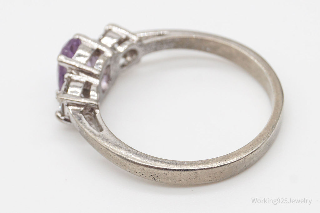 Vintage Amethyst Cubic Zirconia Sterling Silver Ring - Size 8.25