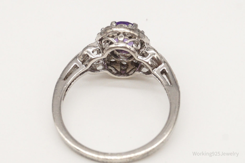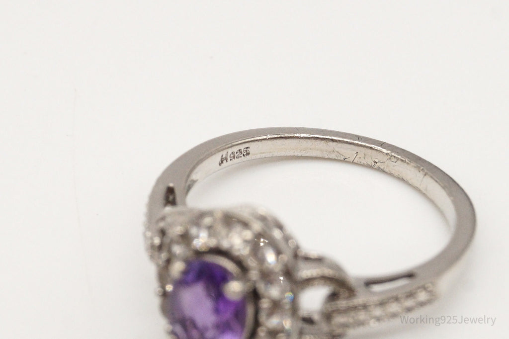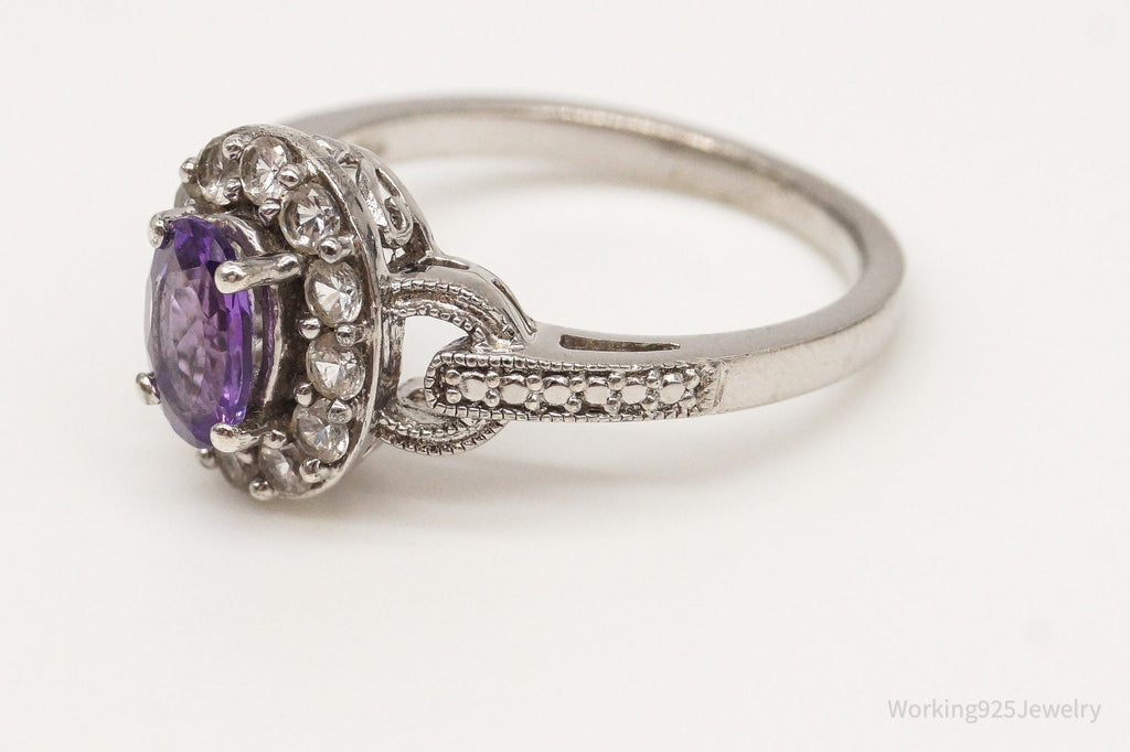 Vintage Amethyst Cubic Zirconia Sterling Silver Ring Size 7