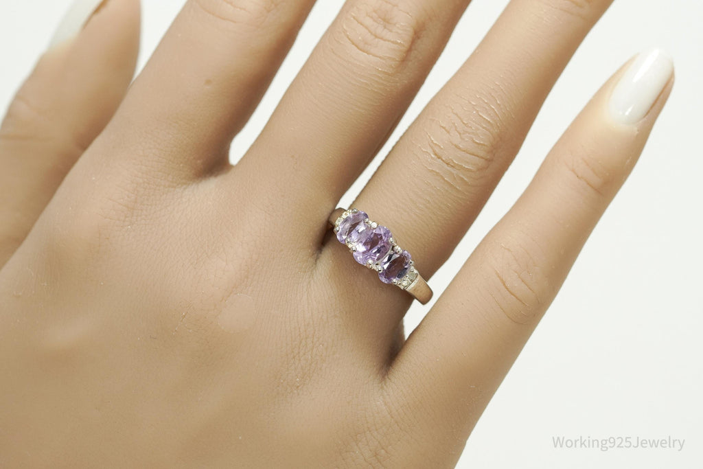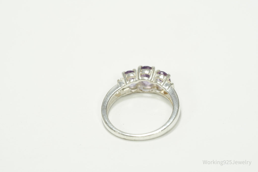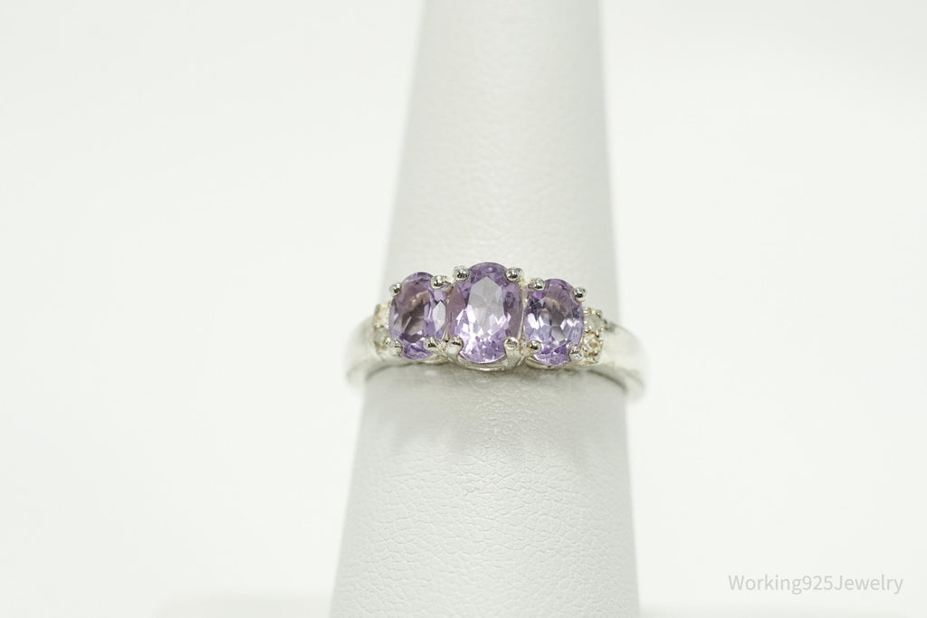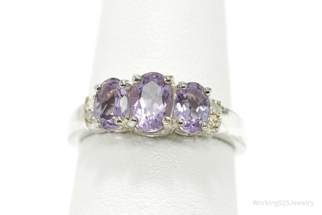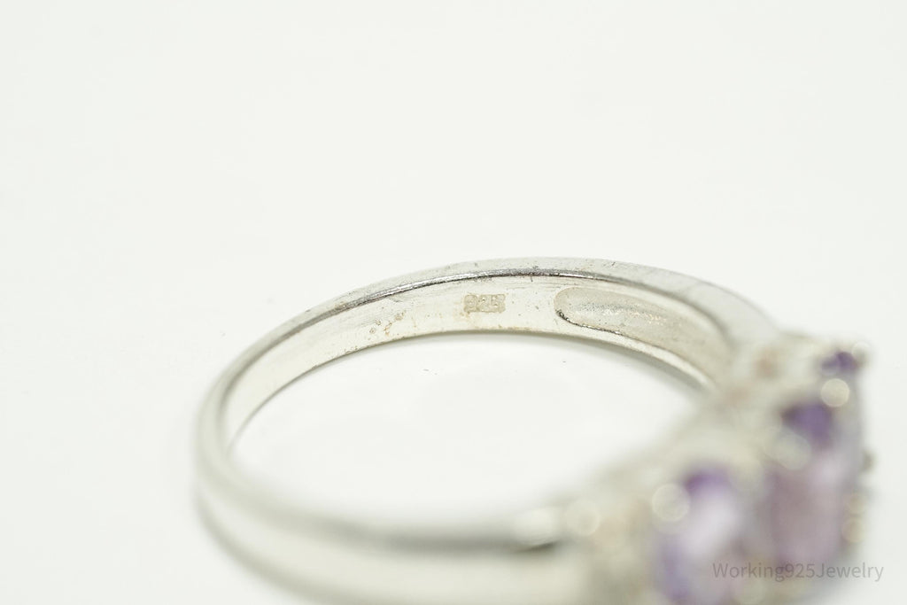 Vintage Amethyst & Diamond Sterling Silver Ring - Size 7