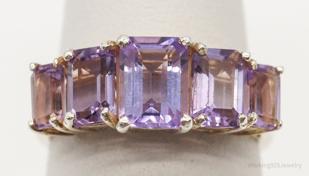 Vintage Amethyst Gold Wash Sterling Silver Ring - Size 5.75