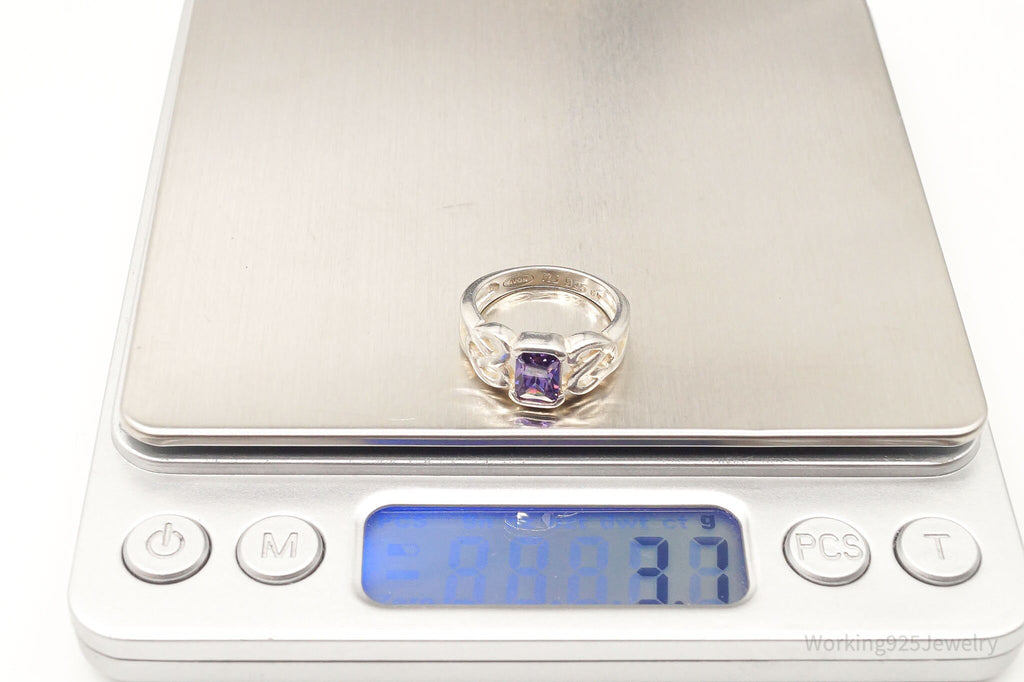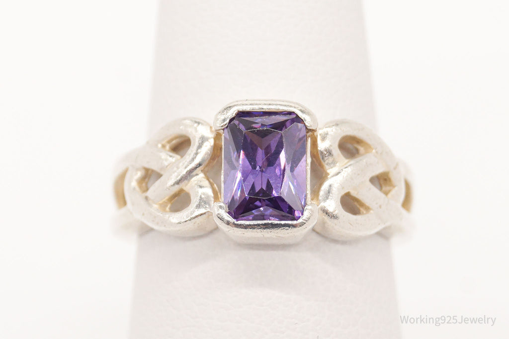 Vintage Amethyst Heart Knots Sterling Silver Ring - Size 5.5