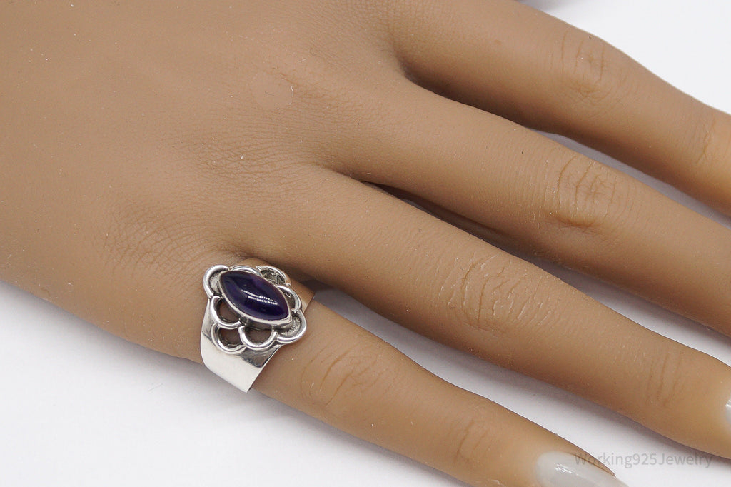 Vintage Amethyst Modernist Style Sterling Silver Ring - Size 6.25