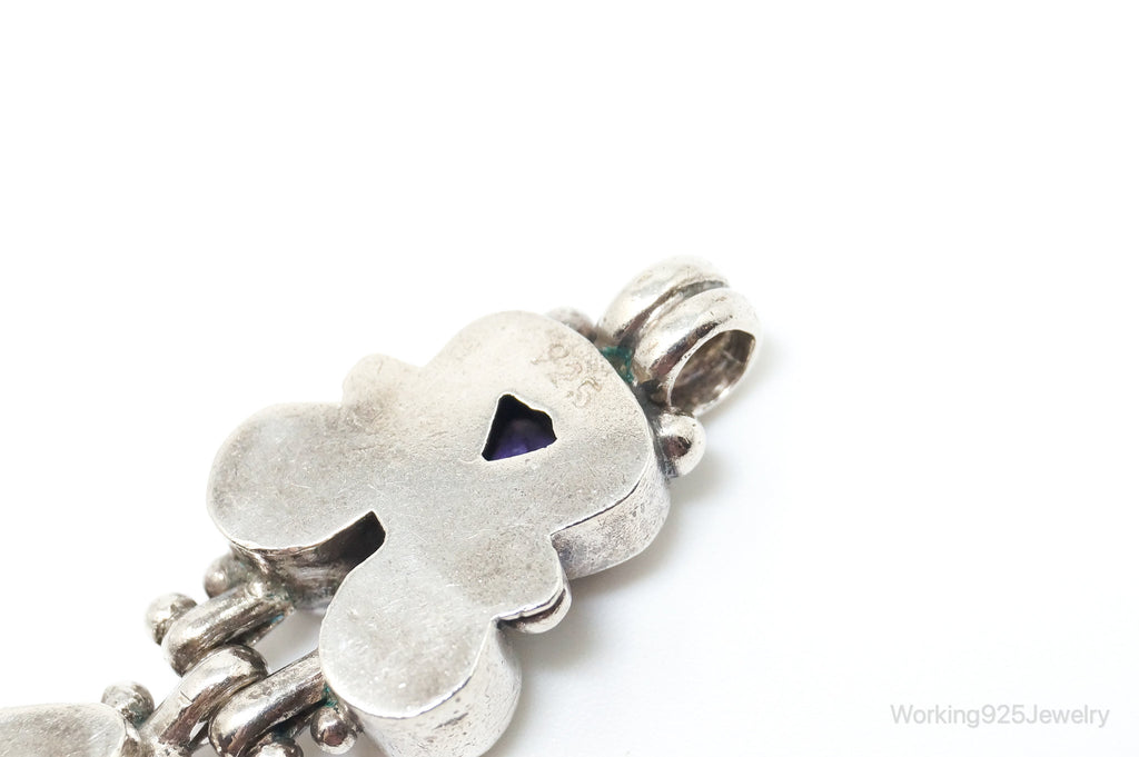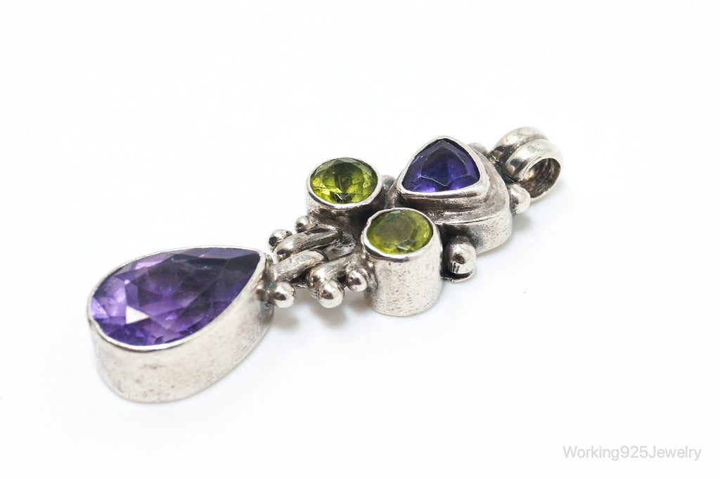 Vintage Amethyst Peridot Sterling Silver Bali Style Necklace Pendant