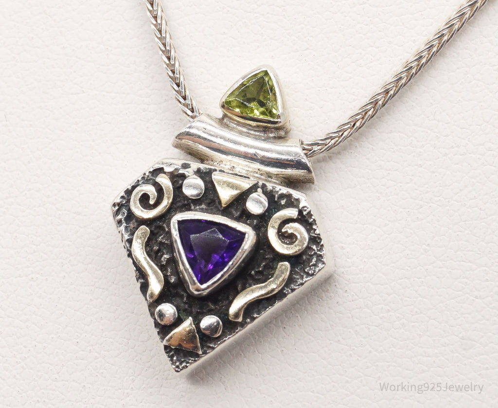 Vintage Amethyst Peridot Sterling Silver Necklace