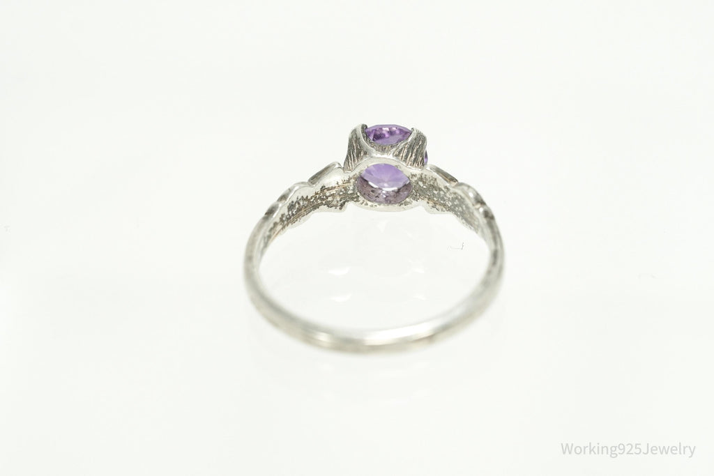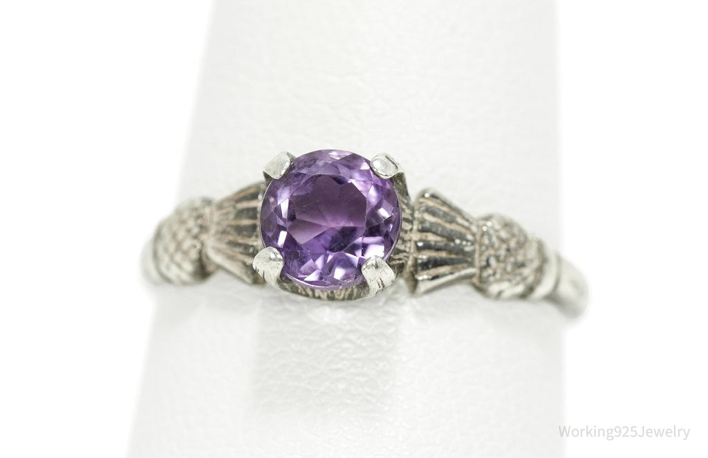 Vintage Amethyst Scottish Thistle Sterling Silver Ring - Size 7