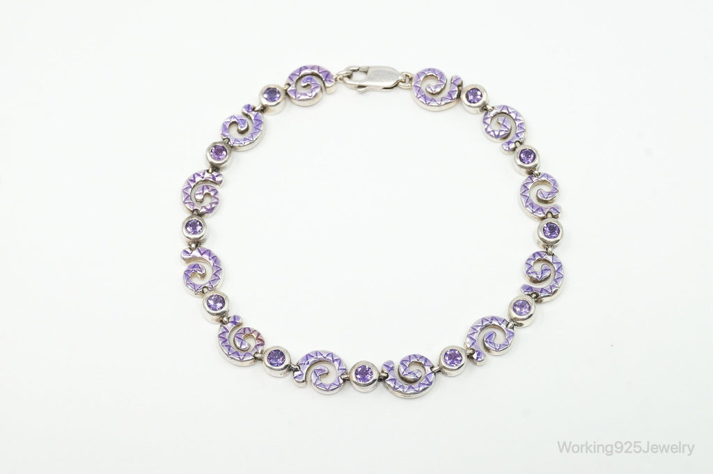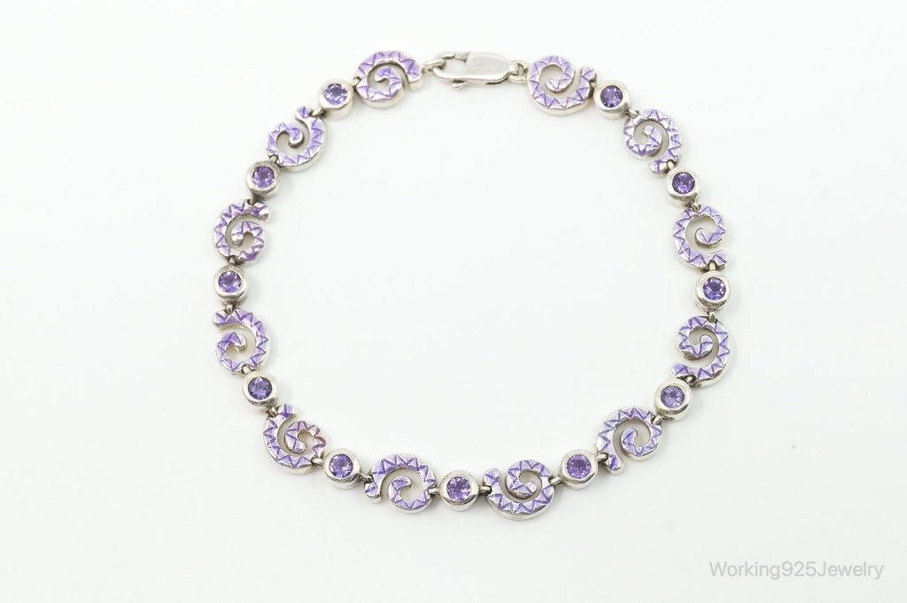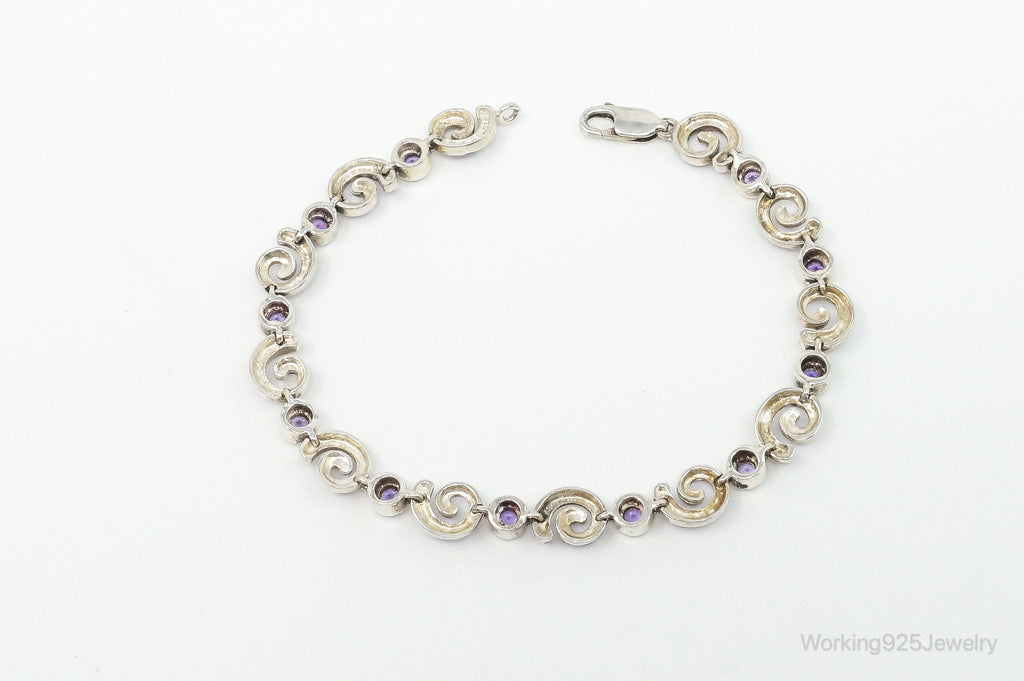 Vintage Amethyst Spiral Sterling Silver Bracelet
