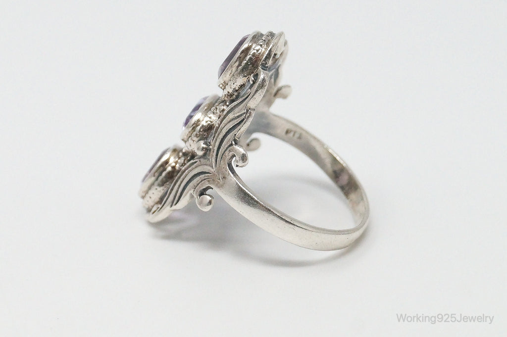 Vintage Amethyst Sterling Silver Statement Ring - Size 10
