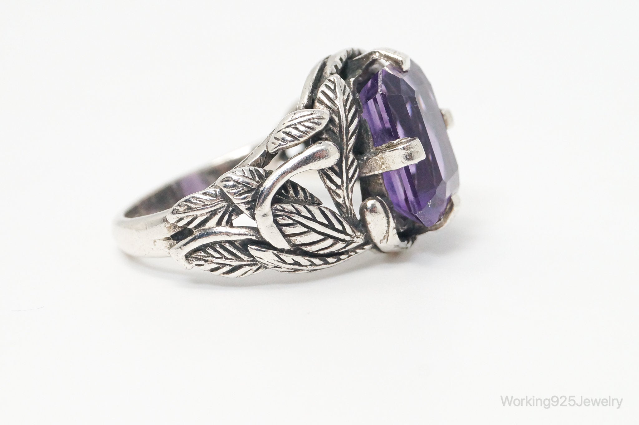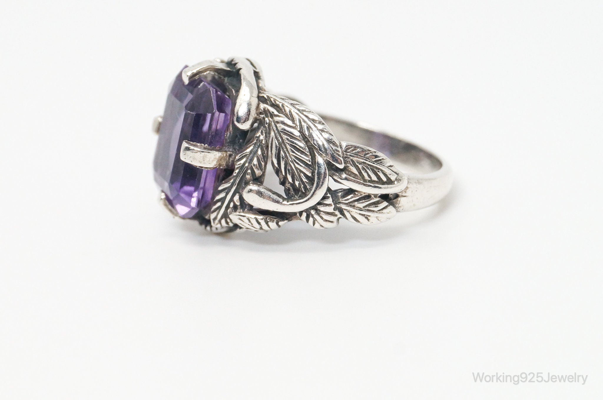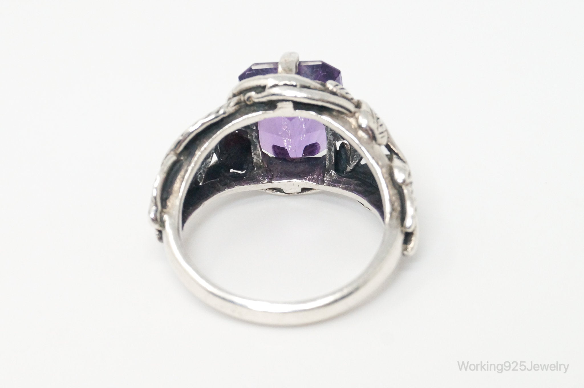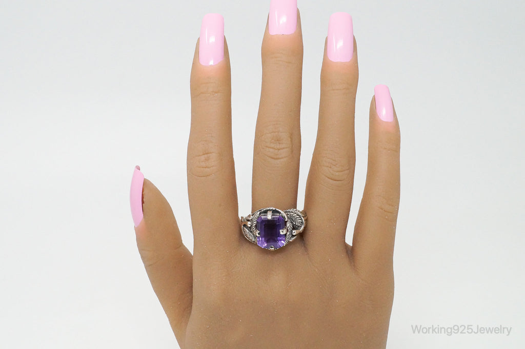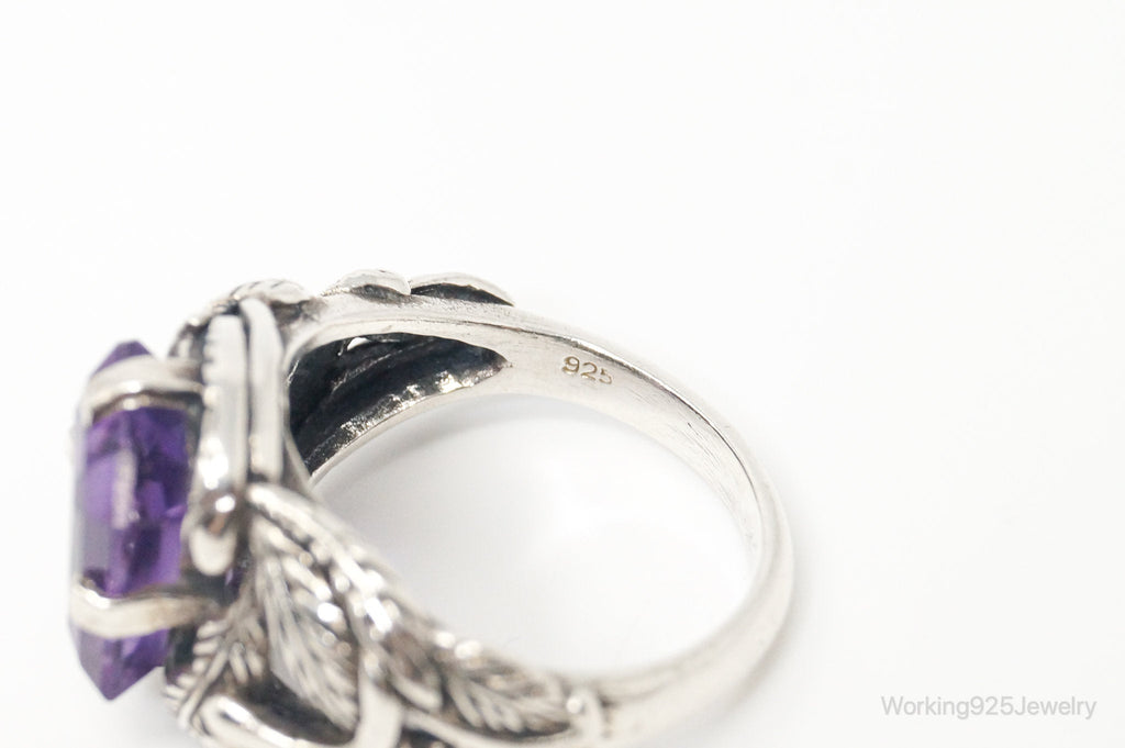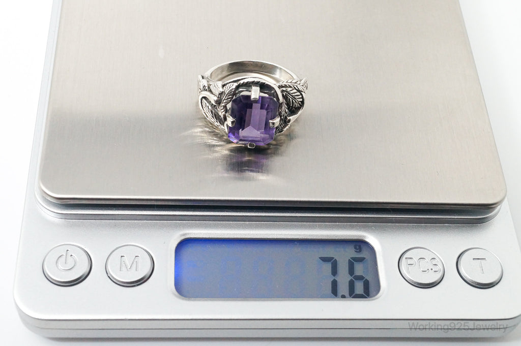 Vintage Amethyst Sterling Silver Statement Ring Sz 7.75