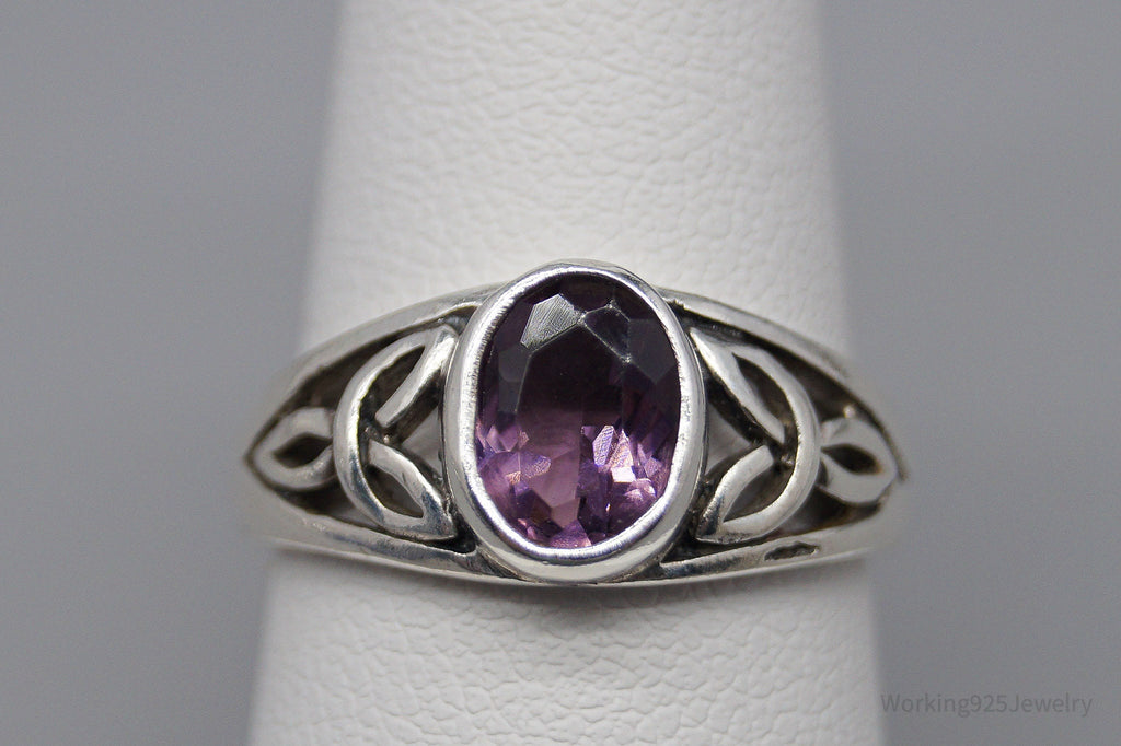Vintage Amethyst Trinity Celtic Knot Sterling Silver Ring - Size 7