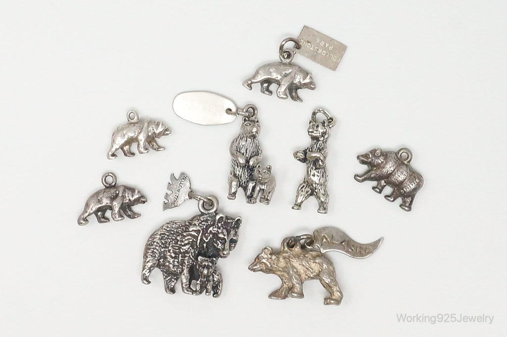 Vintage Antique Bears Cubs Sterling Silver Charms Lot