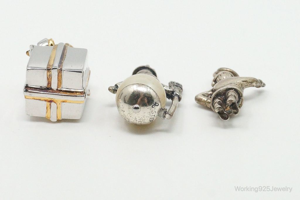 Vintage Antique Christmas Themed Sterling Silver Charms