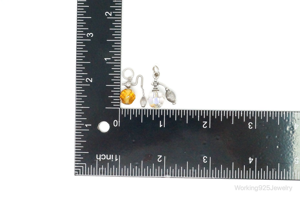 Vintage Antique Crystal Antiqued Perfume Bottle Sterling Silver Charm Set
