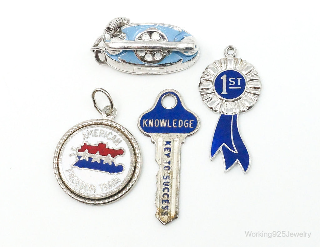 Vintage Antique Enamel Sterling Silver Charms Lot