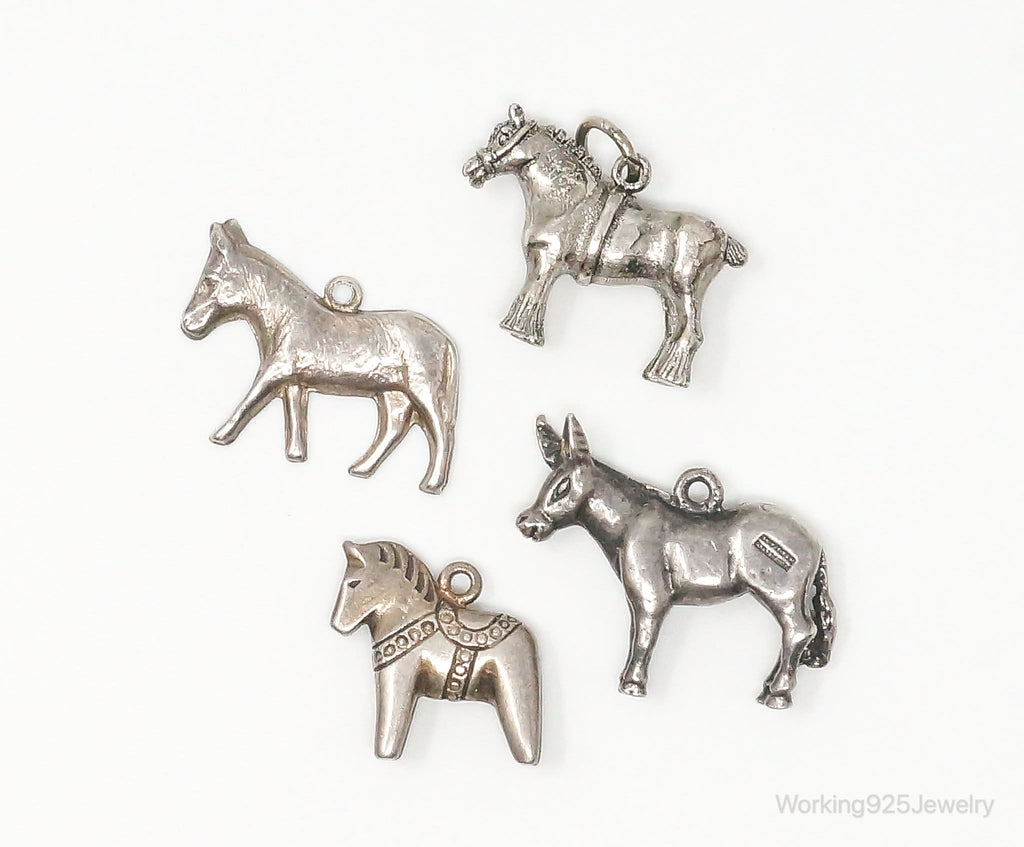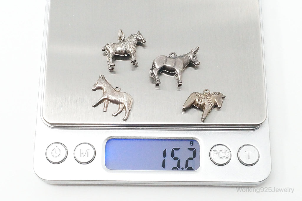 Vintage Antique Horses & Donkeys Sterling Silver Charms Lot