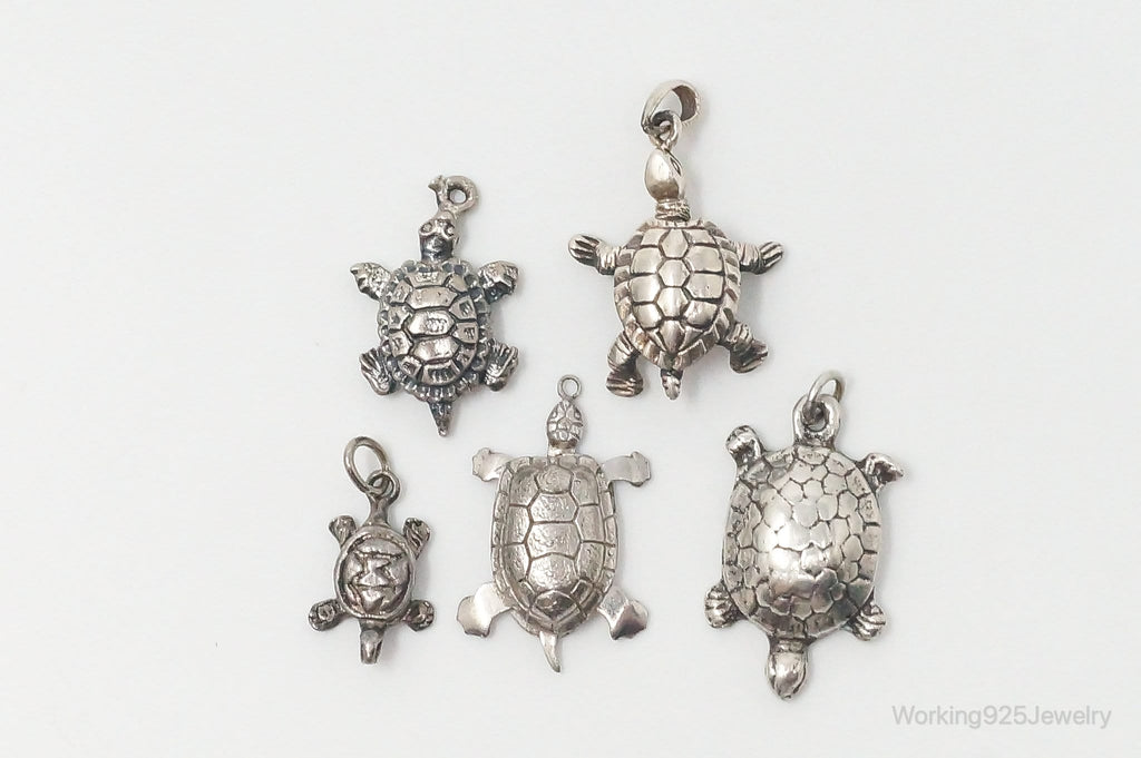 Vintage Antique Ocean Sea Turtles Sterling Silver Charms Lot