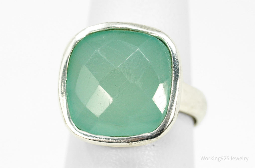 Vintage Aqua Chalcedony Silver Ring - Size 7