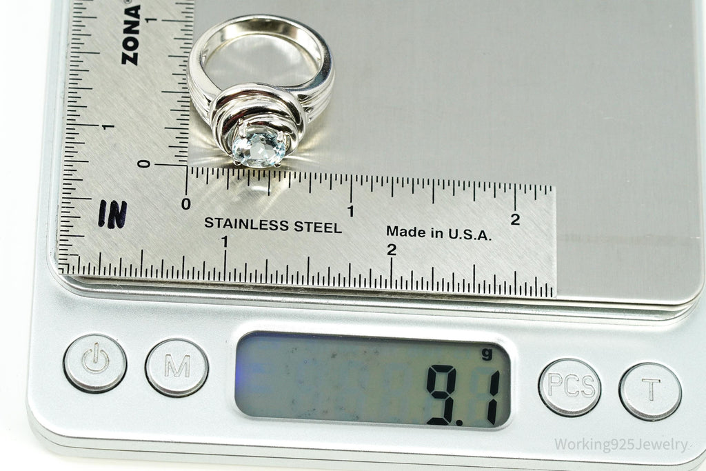 Vintage Aquamarine Sterling Silver Ring - Size 8