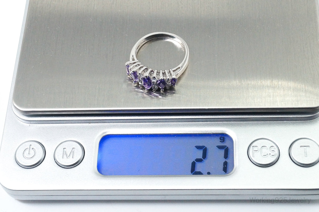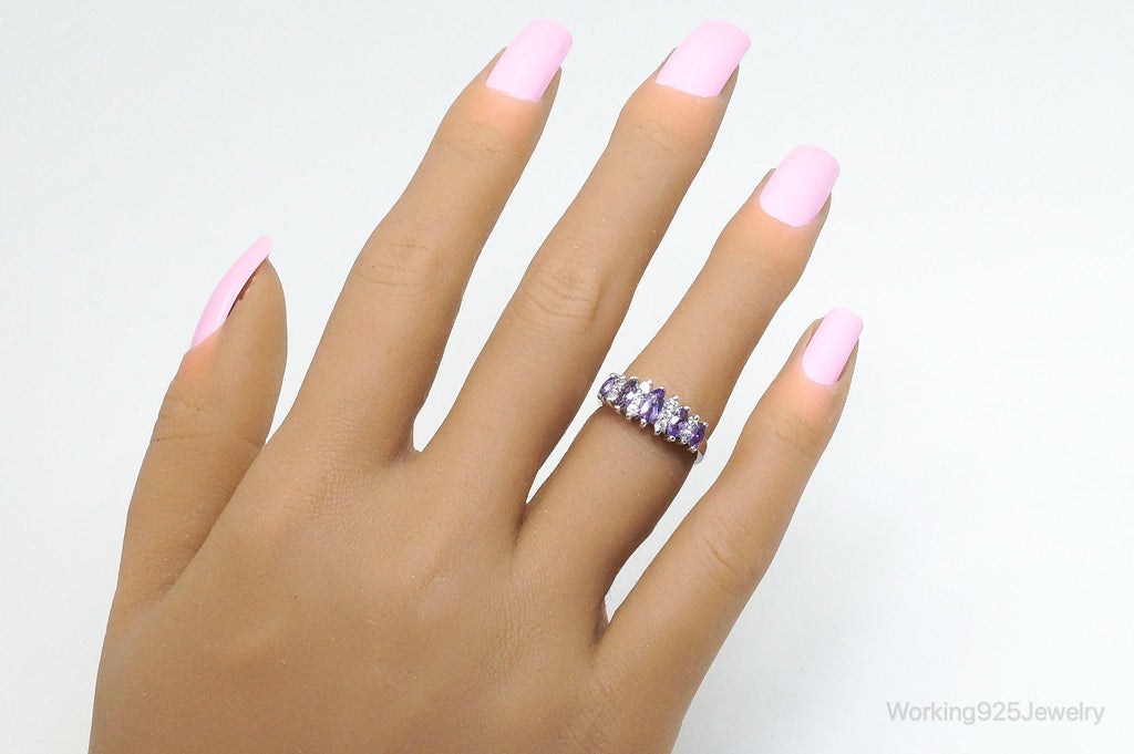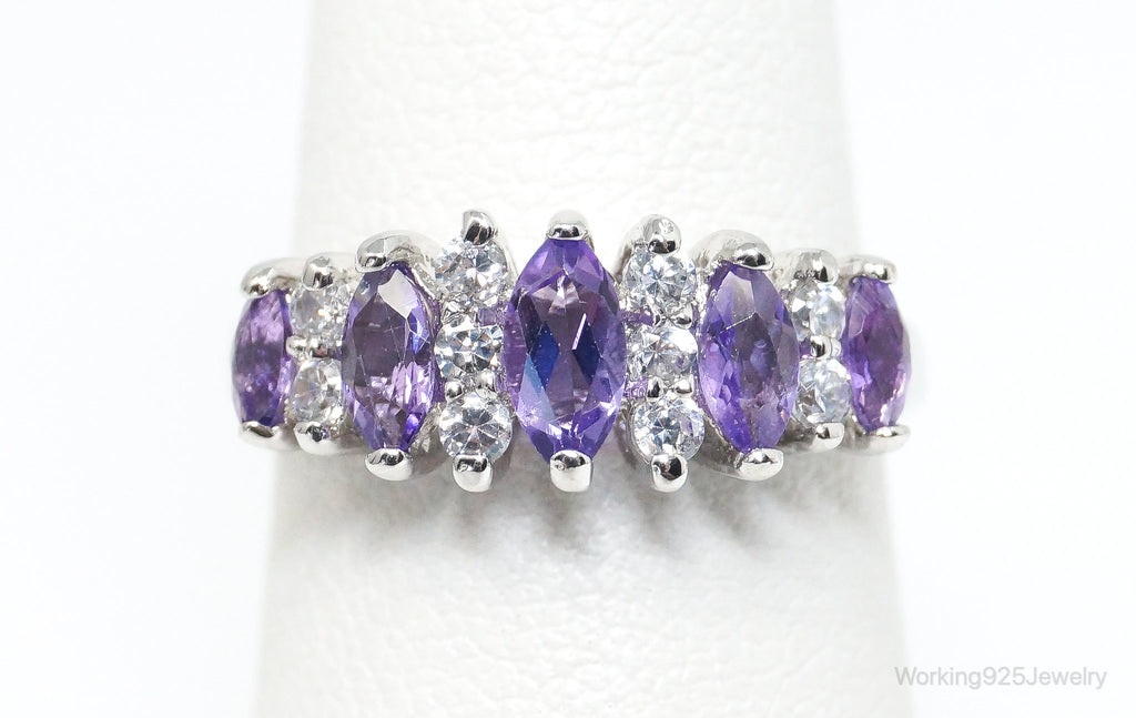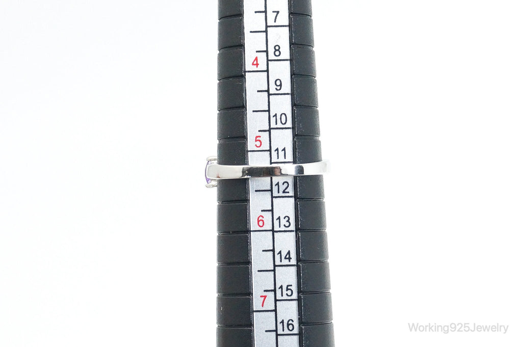 Vintage Art Deco Amethyst Cubic Zirconia Sterling Silver Ring - SZ 5.25