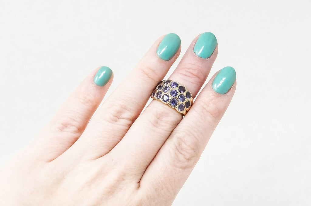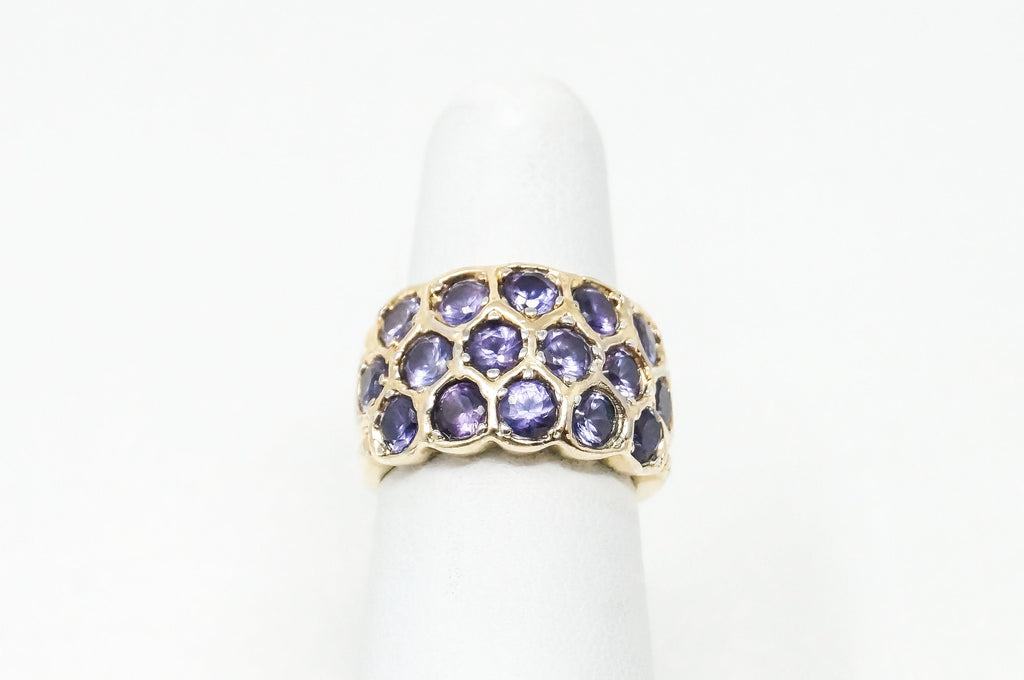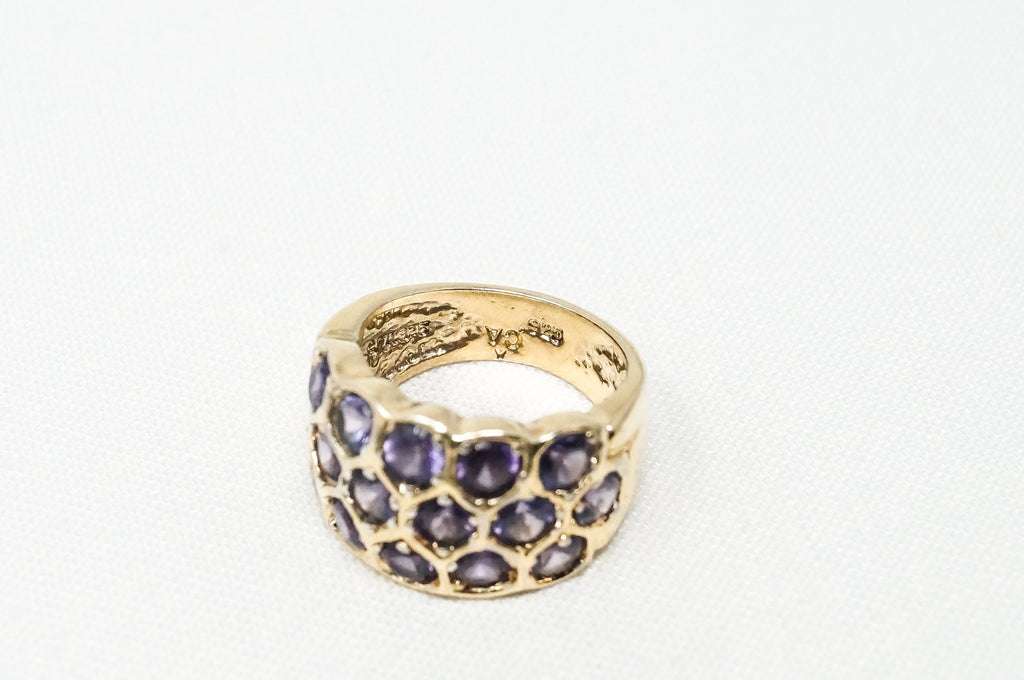 Vintage Art Deco Amethyst Gold Vermeil Sterling Silver Ring - Sz 5 -784241332
