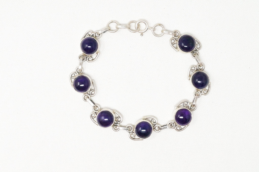Vintage Art Deco Amethyst Modernist Sterling Silver Bracelet