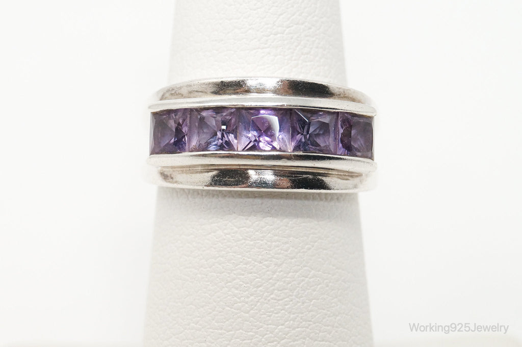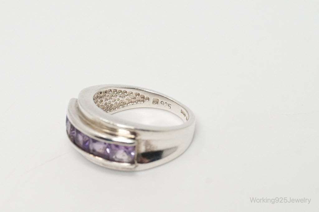 Vintage Art Deco Amethyst Sterling Silver Ring - Sz 6