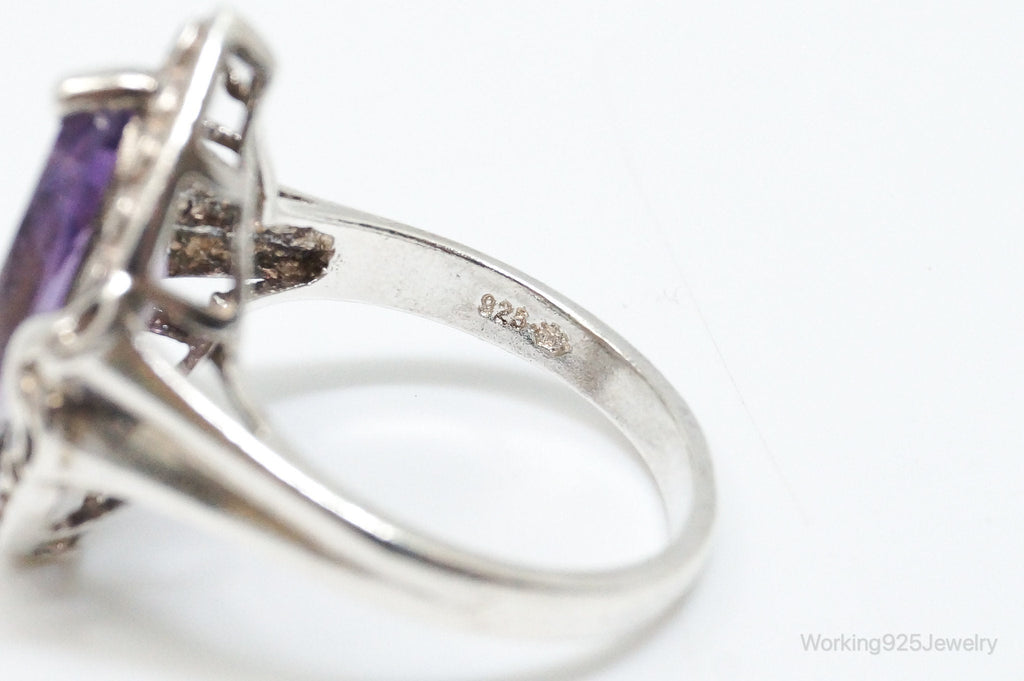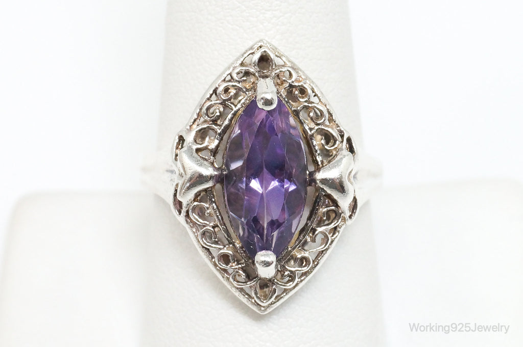 Vintage Art Deco Amethyst Sterling Silver Ring - SZ 9.25