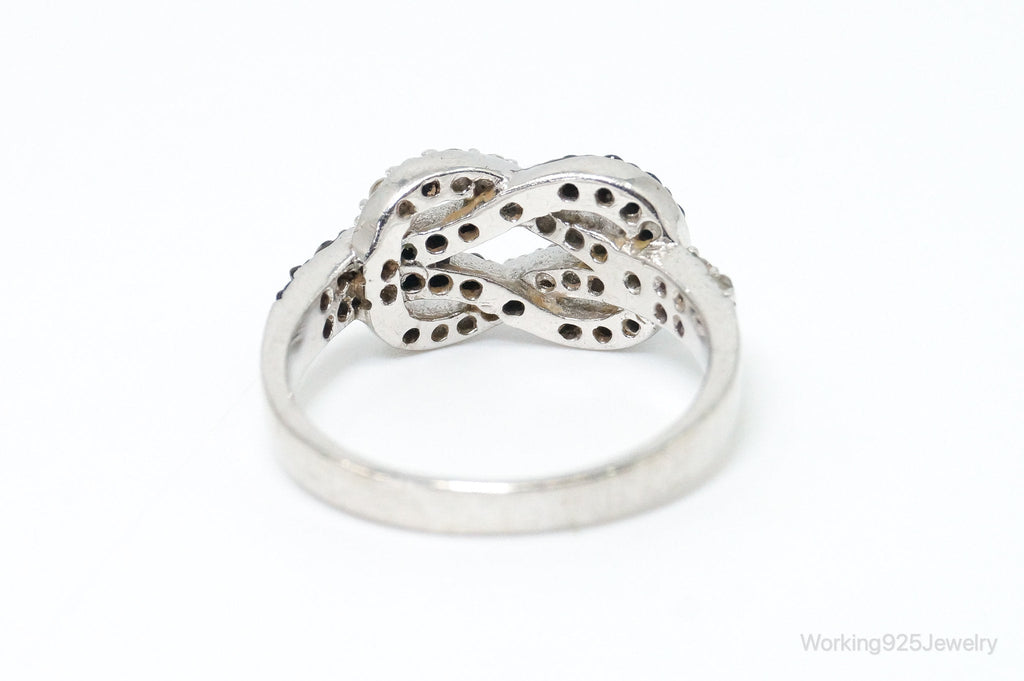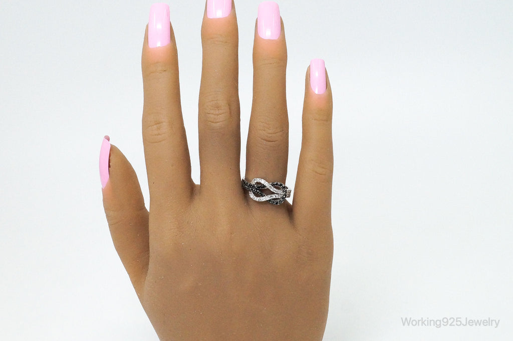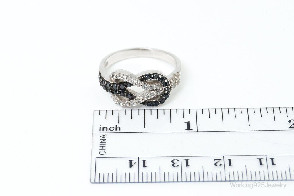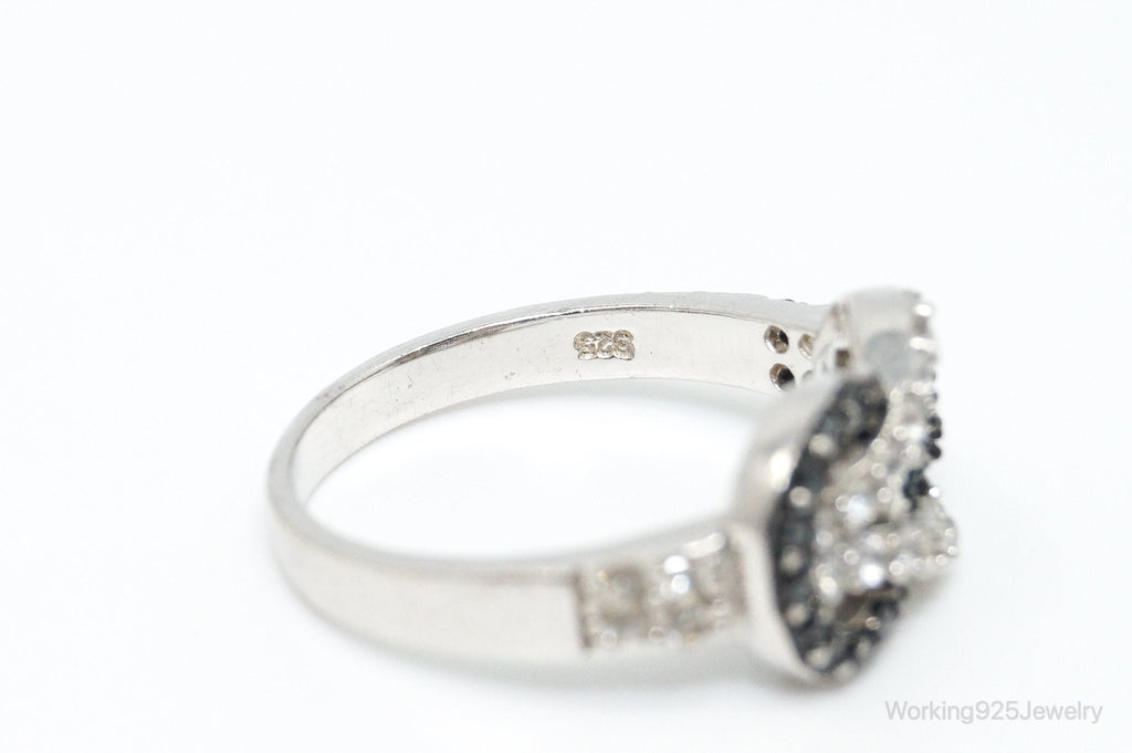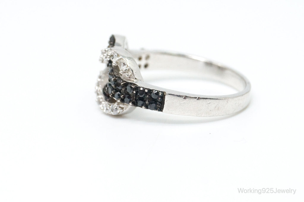 Vintage Art Deco Black Onyx Cubic Zirconia Sterling Silver Ring Size 8