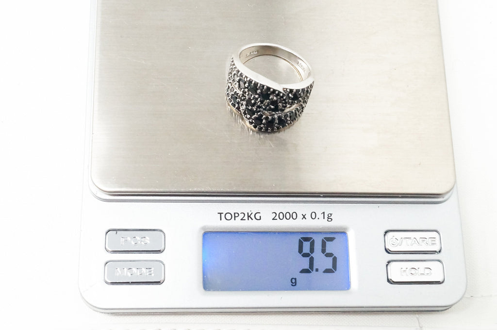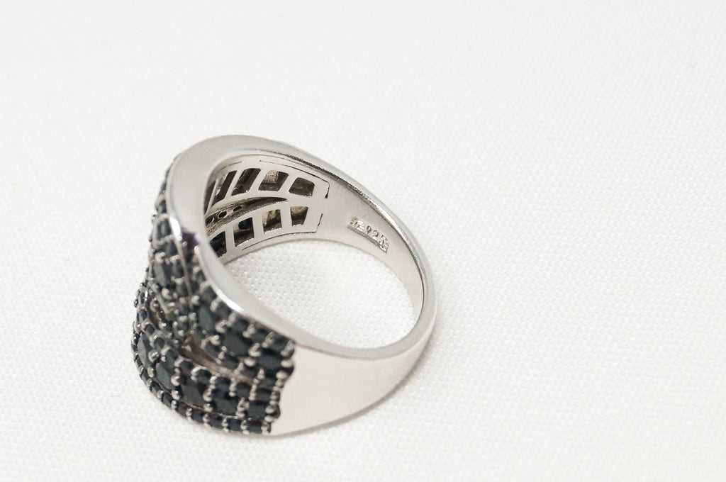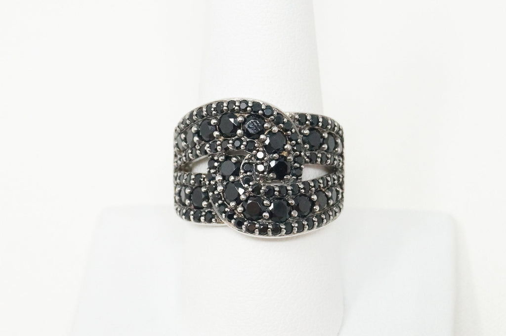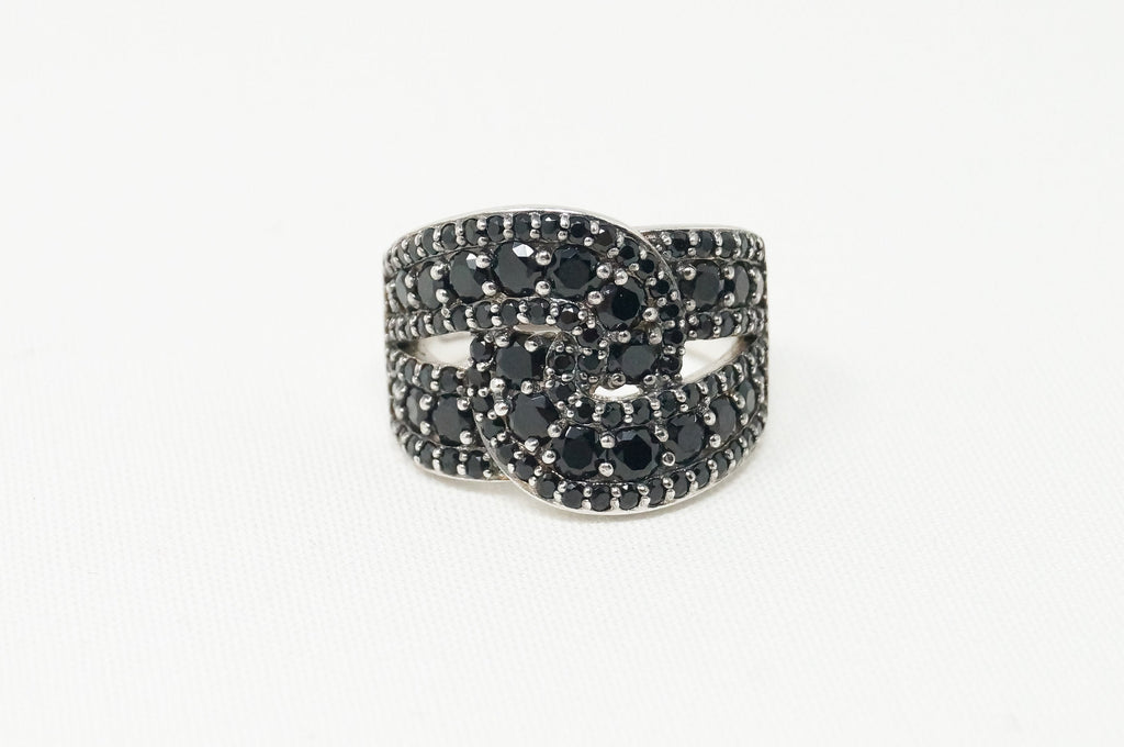 Vintage Art Deco Black Onyx Twist Design Sterling Silver Ring - Sz 9