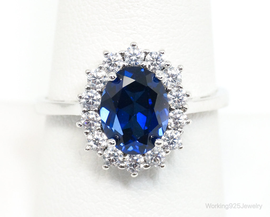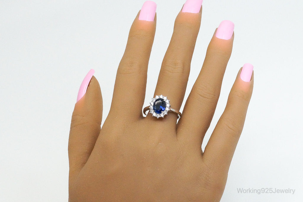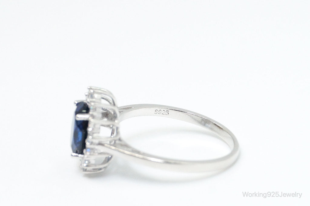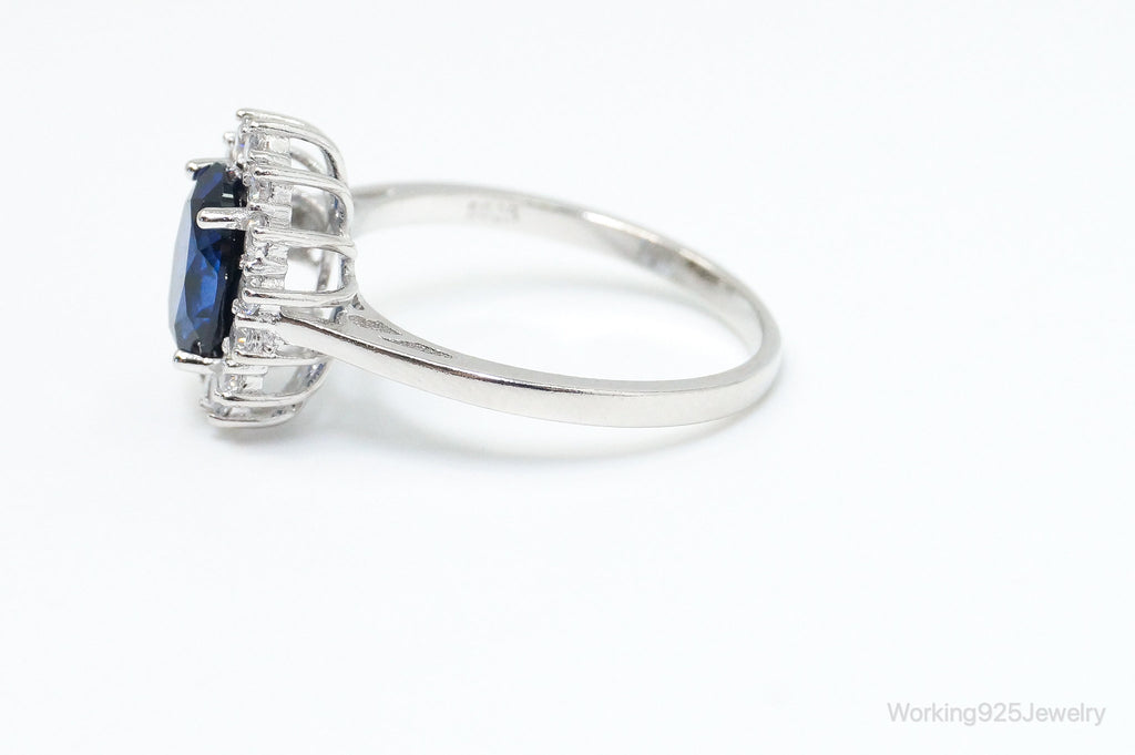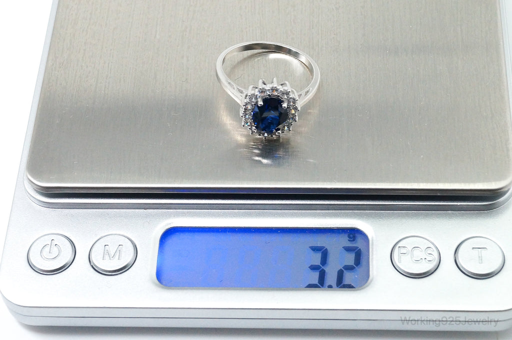 Vintage Art Deco Blue Lab Sapphire CZ Sterling Silver Ring - Size 9.25