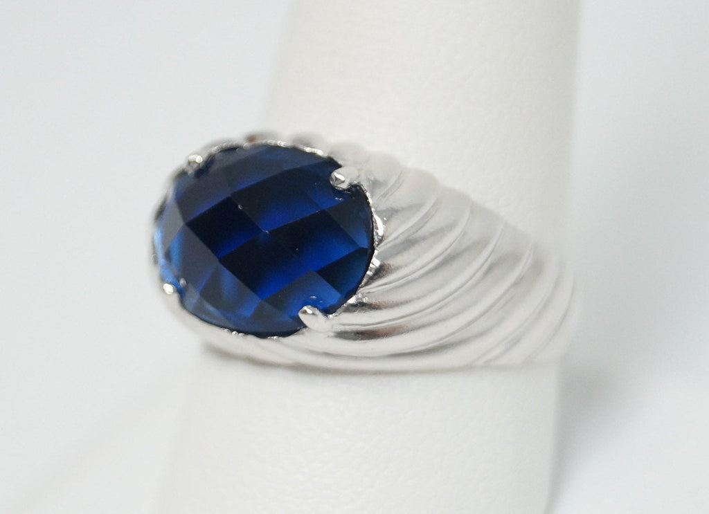 Vintage Art Deco Blue Sapphire Sterling Silver Ring - Sz 9.75