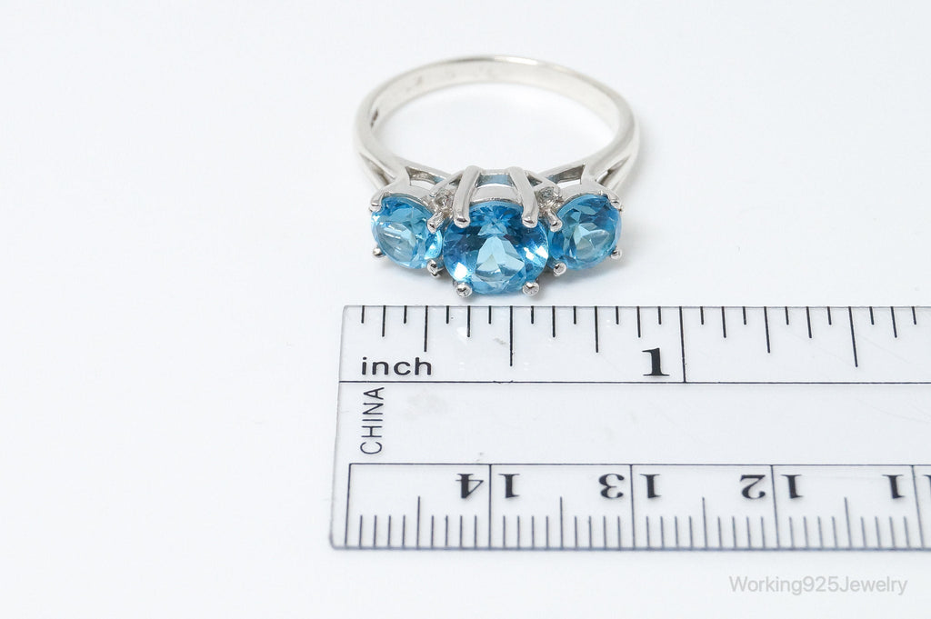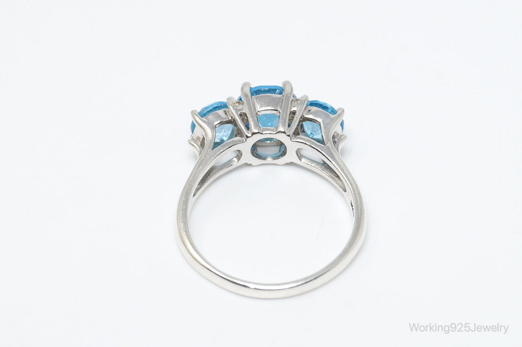 Vintage Art Deco Blue Topaz Cubic Zirconia Sterling Silver Ring Size 9.75