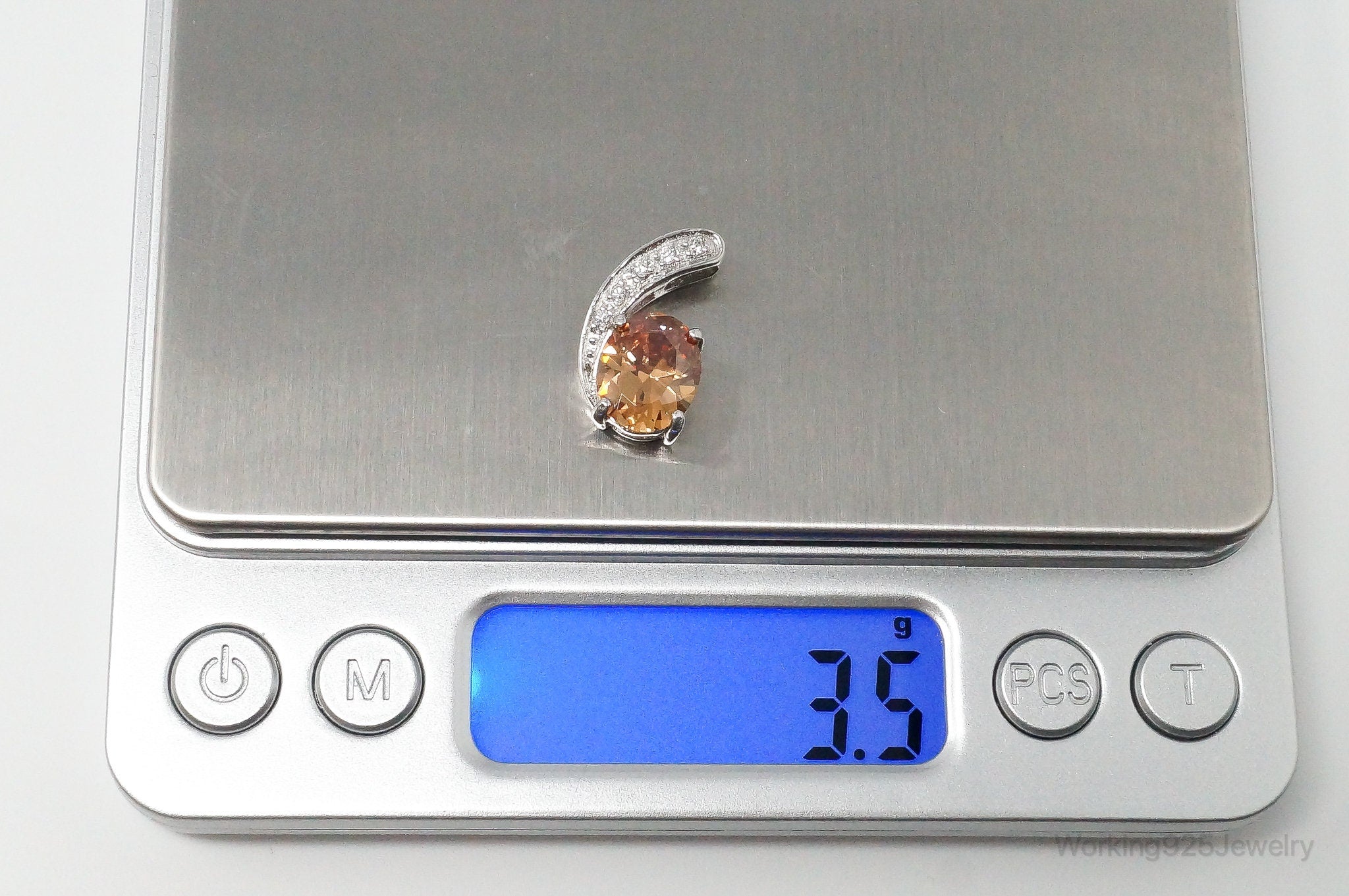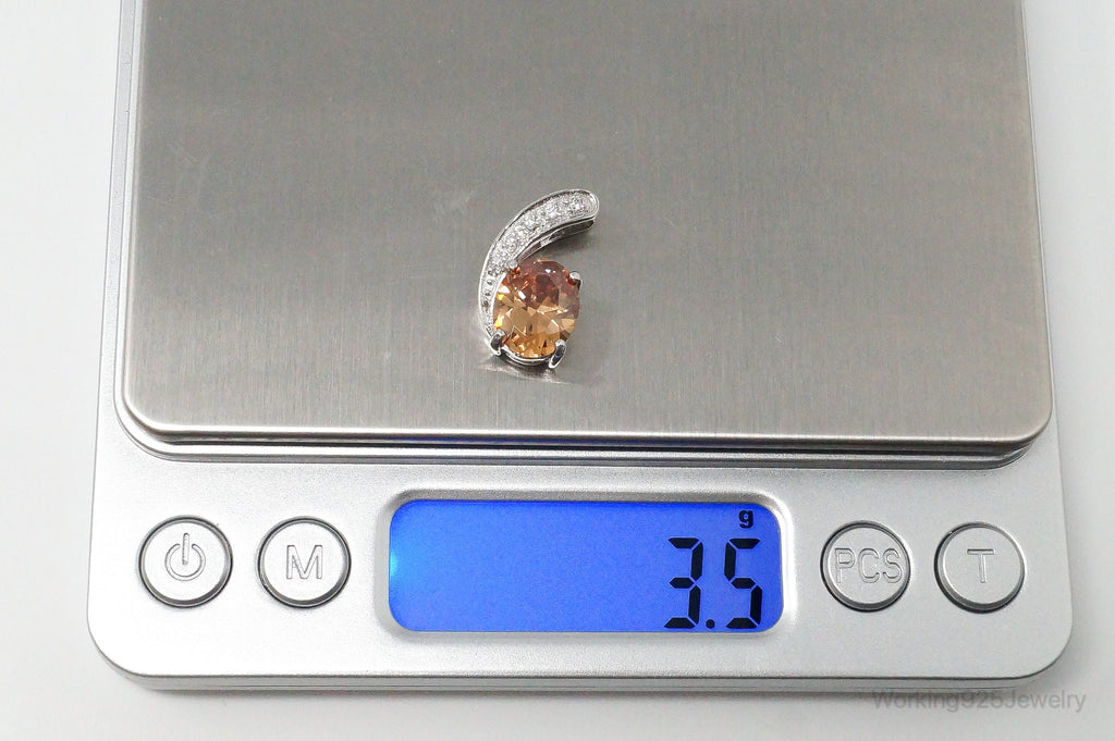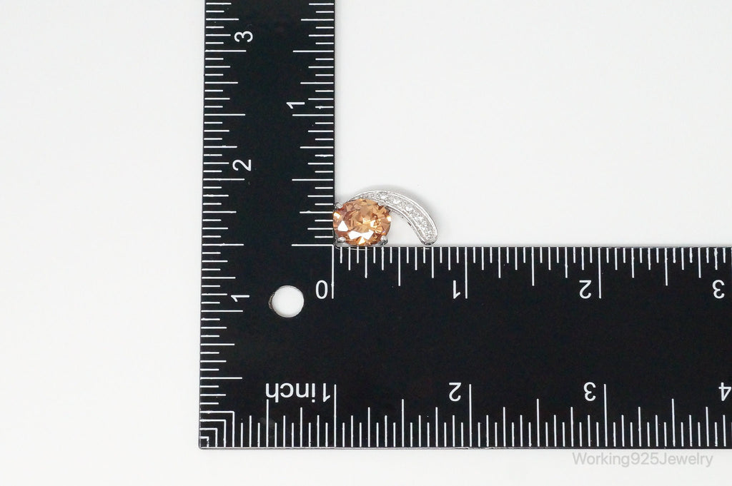 Vintage Art Deco Citrine Cubic Zirconia Sterling Silver Pendant