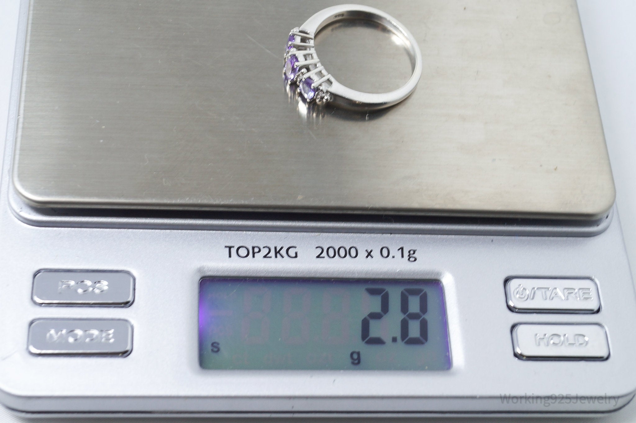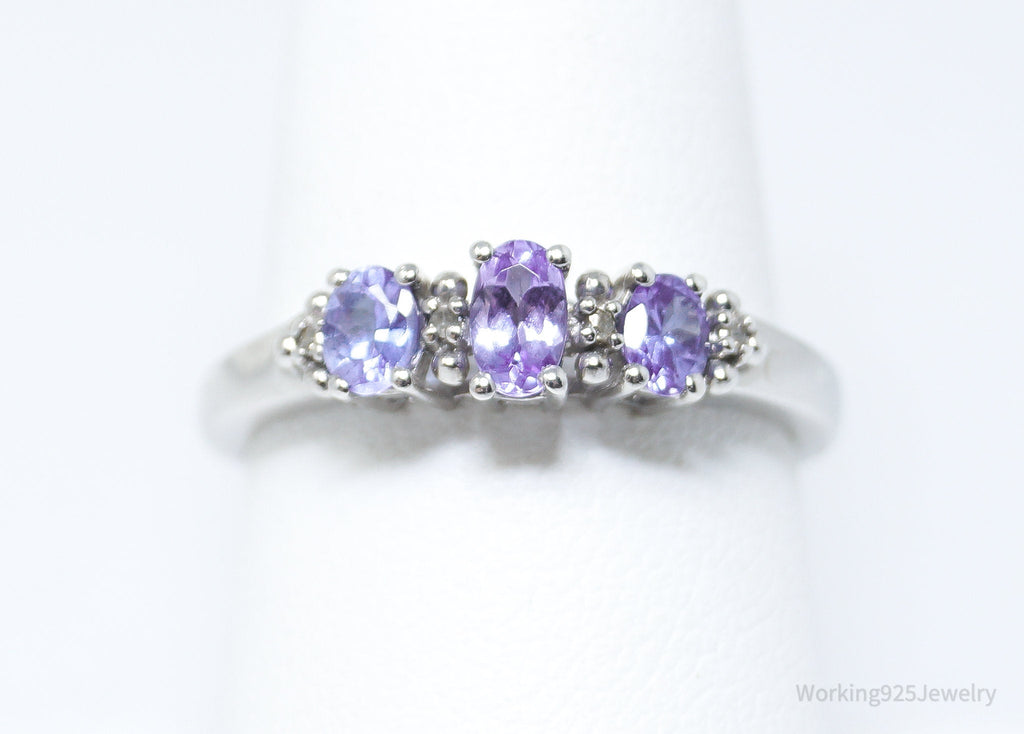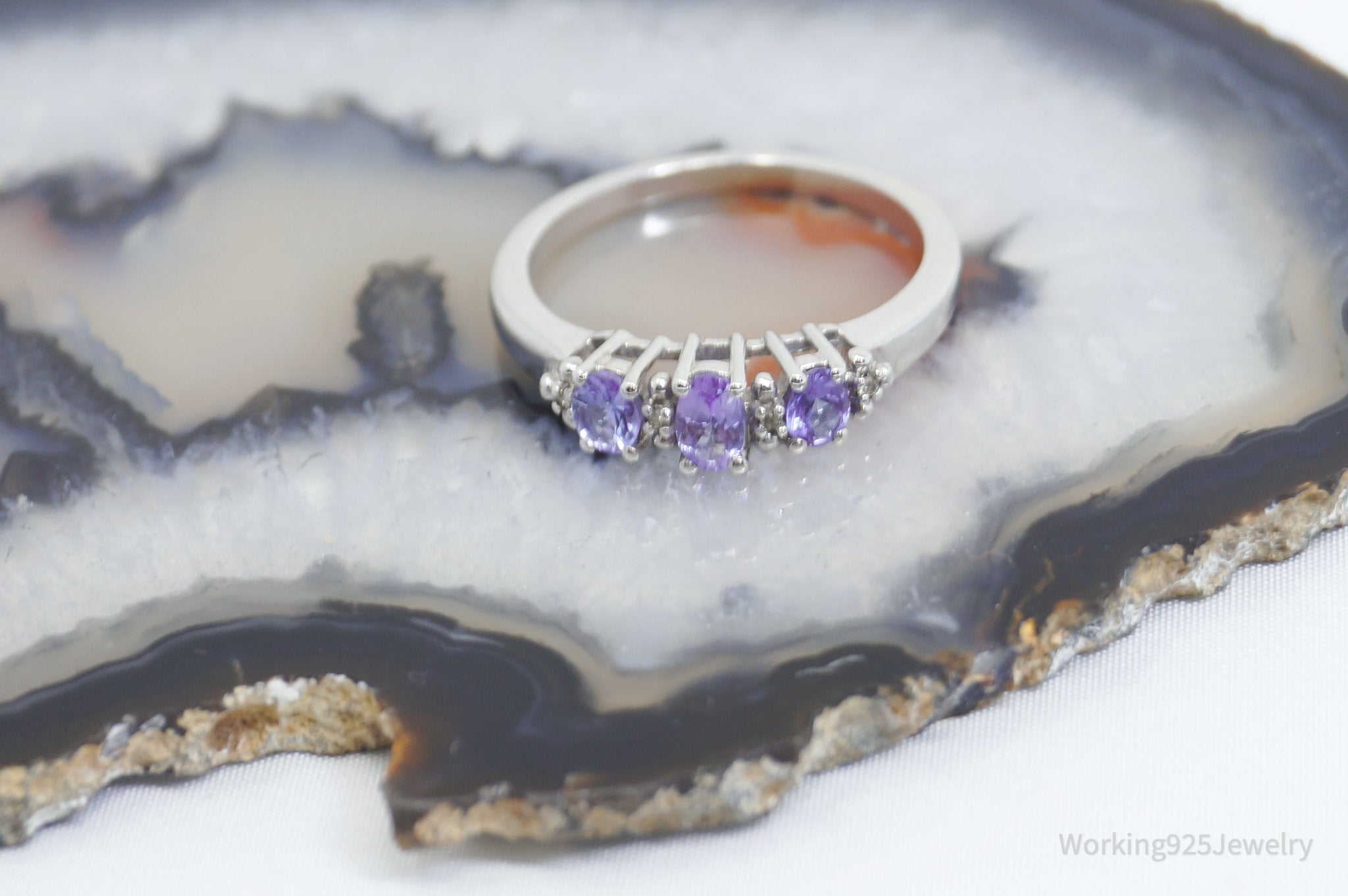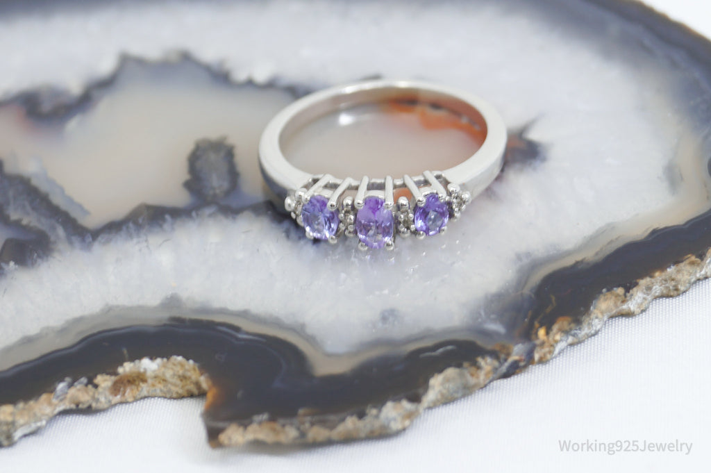 Vintage Art Deco Diamond Amethyst Sterling Silver Ring Sz 8