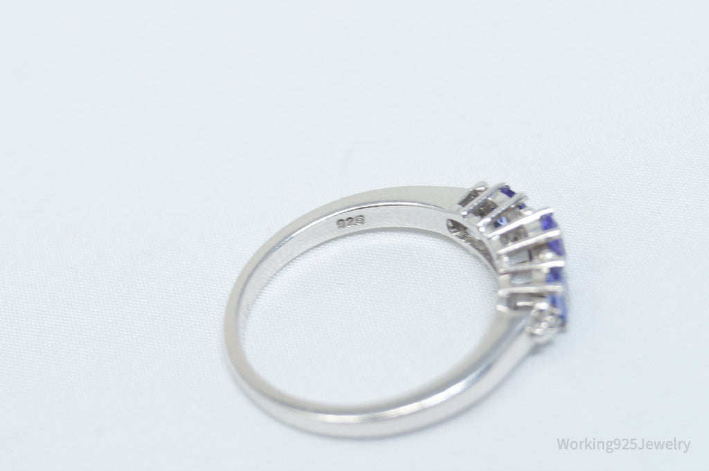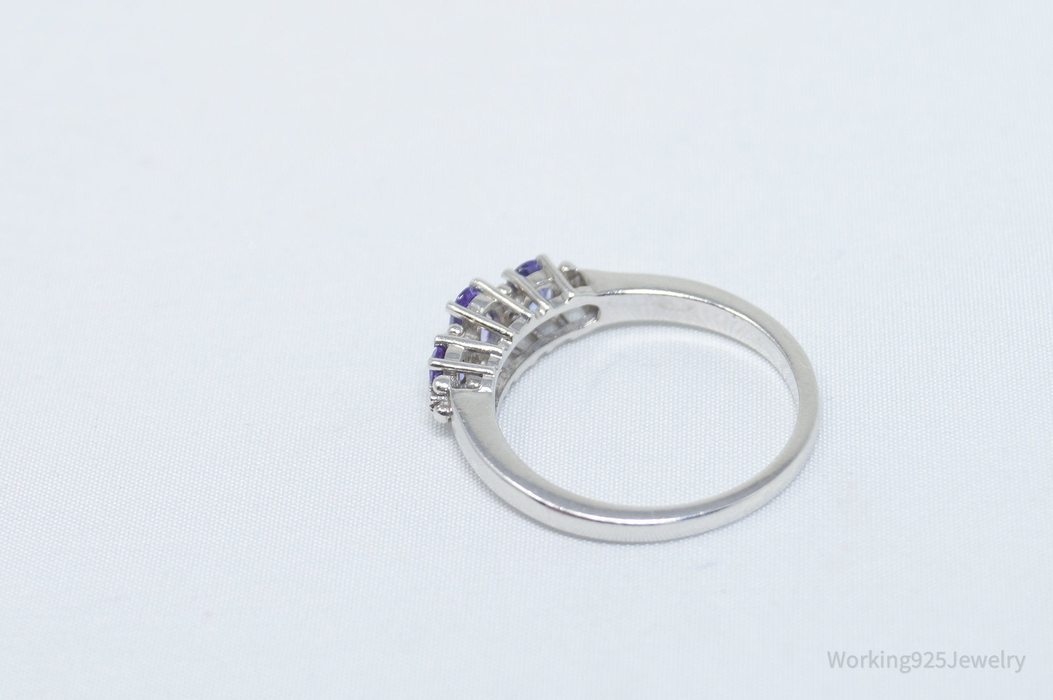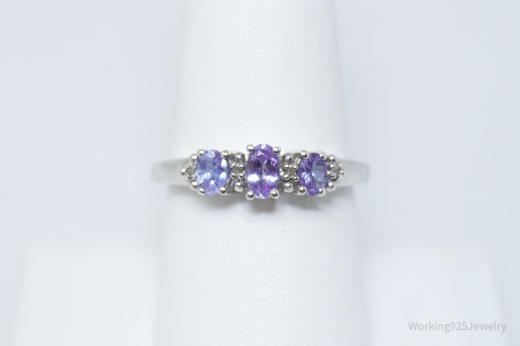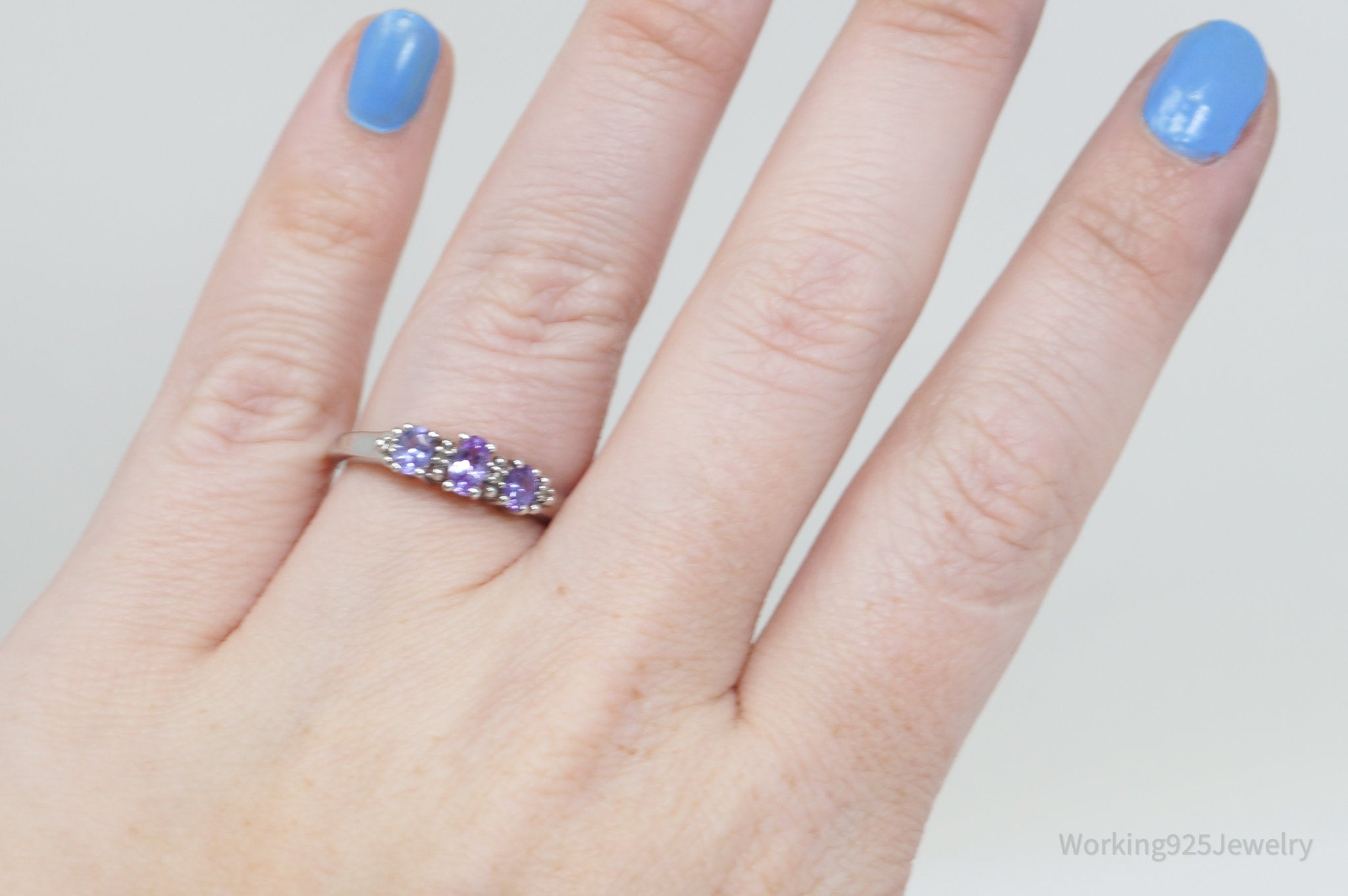 Vintage Art Deco Diamond Amethyst Sterling Silver Ring Sz 8