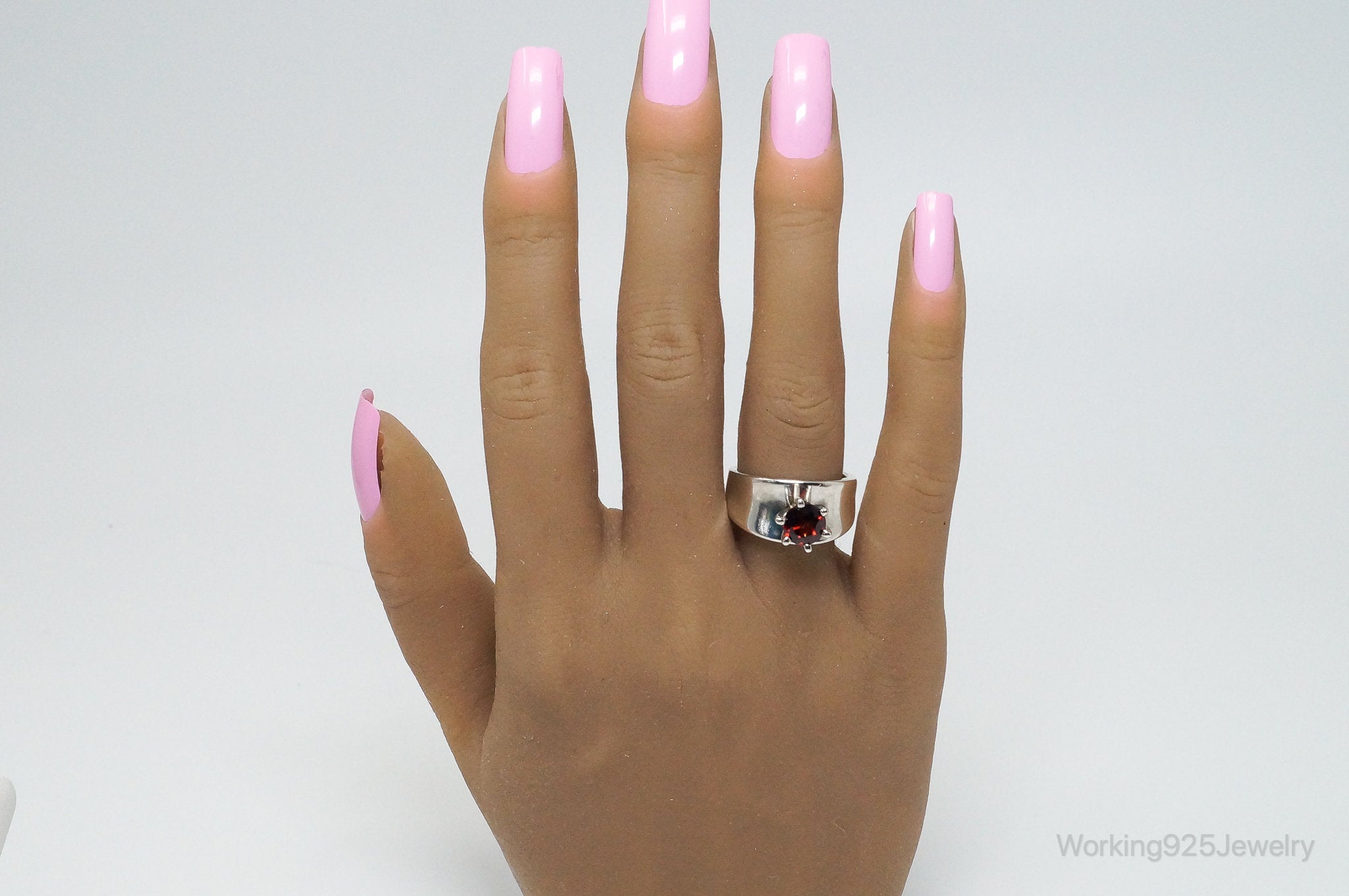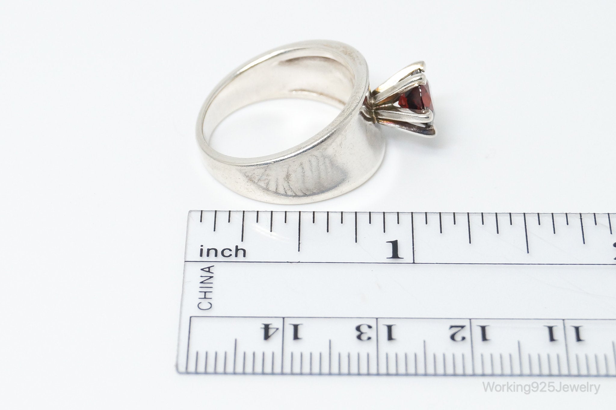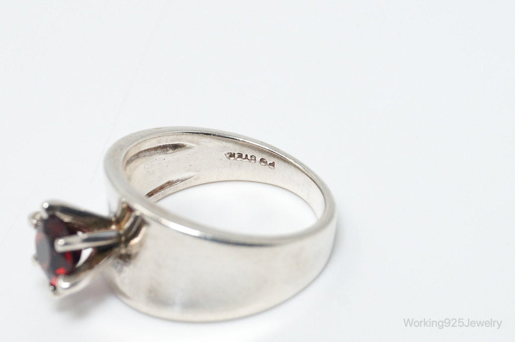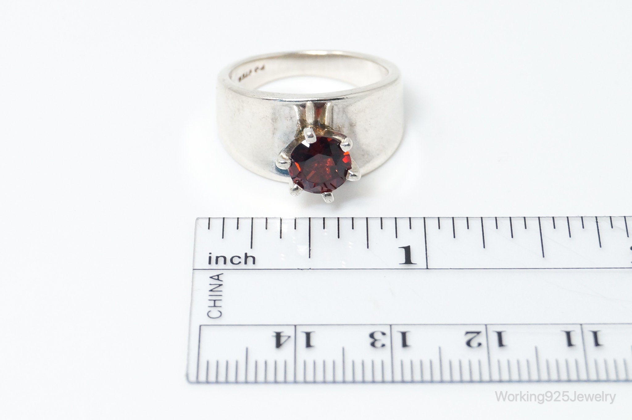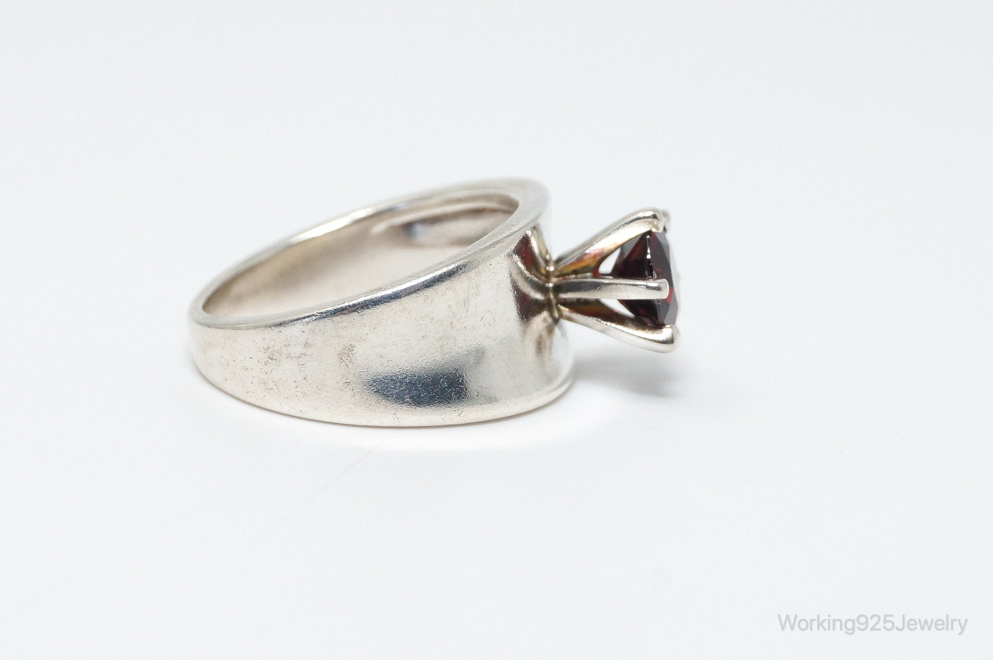 Vintage Art Deco Garnet Sterling Silver Ring - Size 7.75