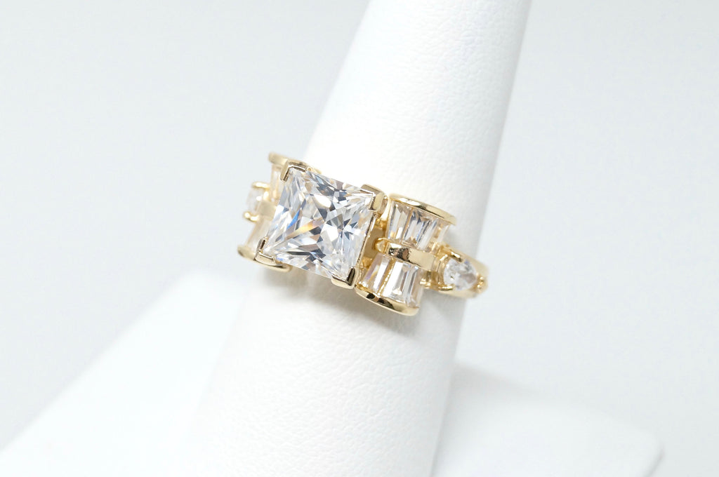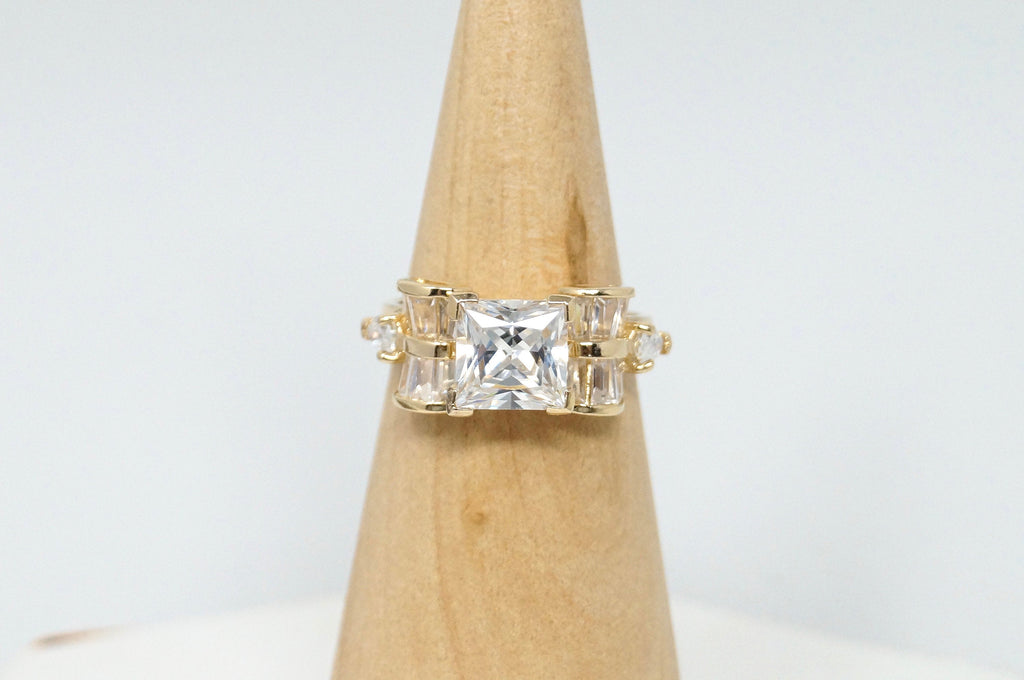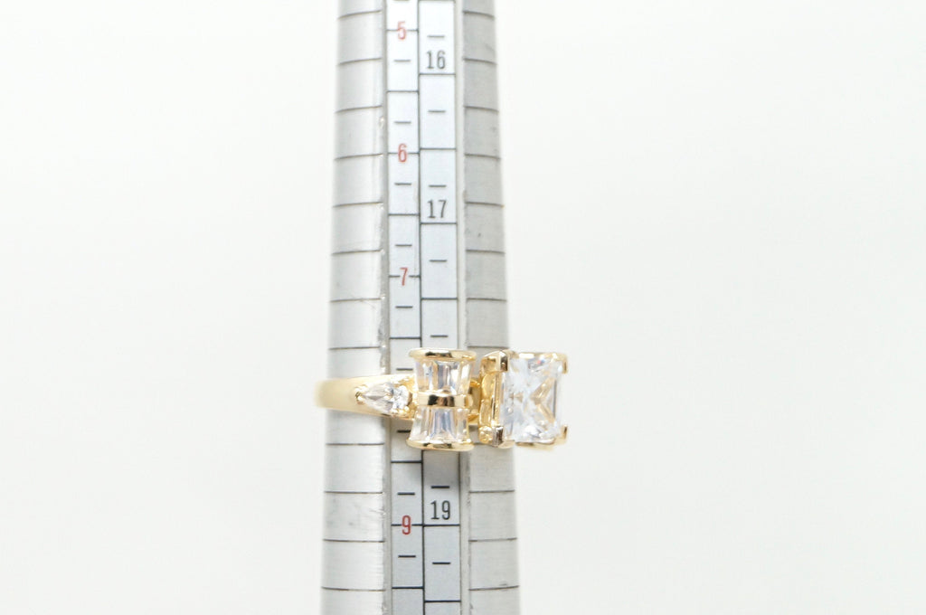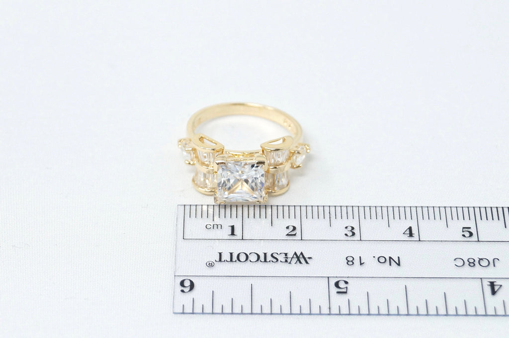 Vintage Art Deco Gold Vermeil Cz Statement Ring Sterling Silver - Size 8