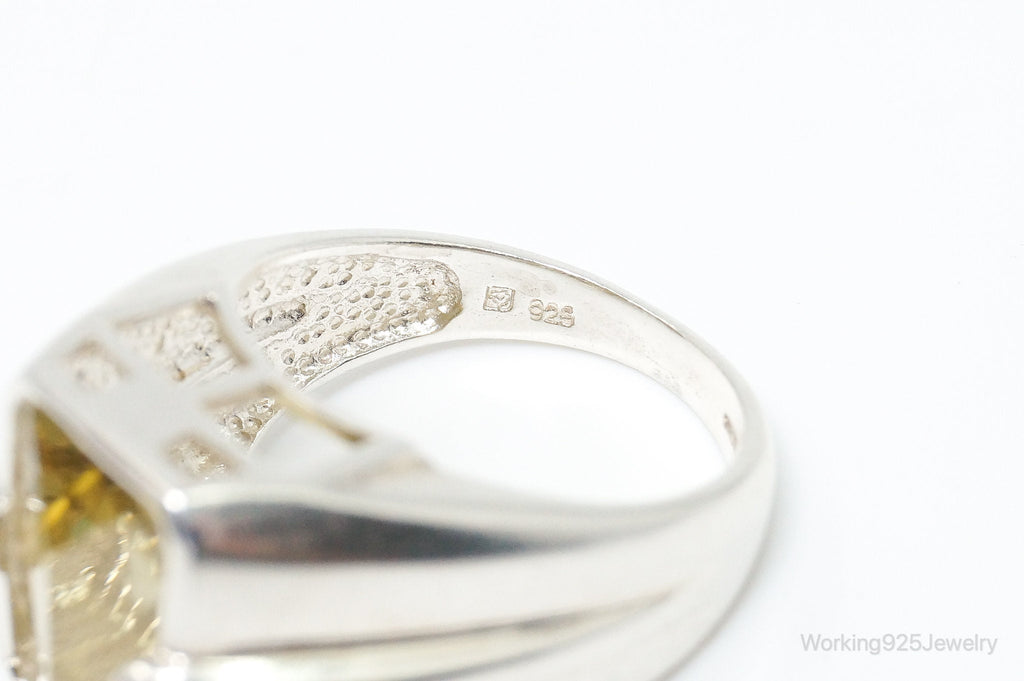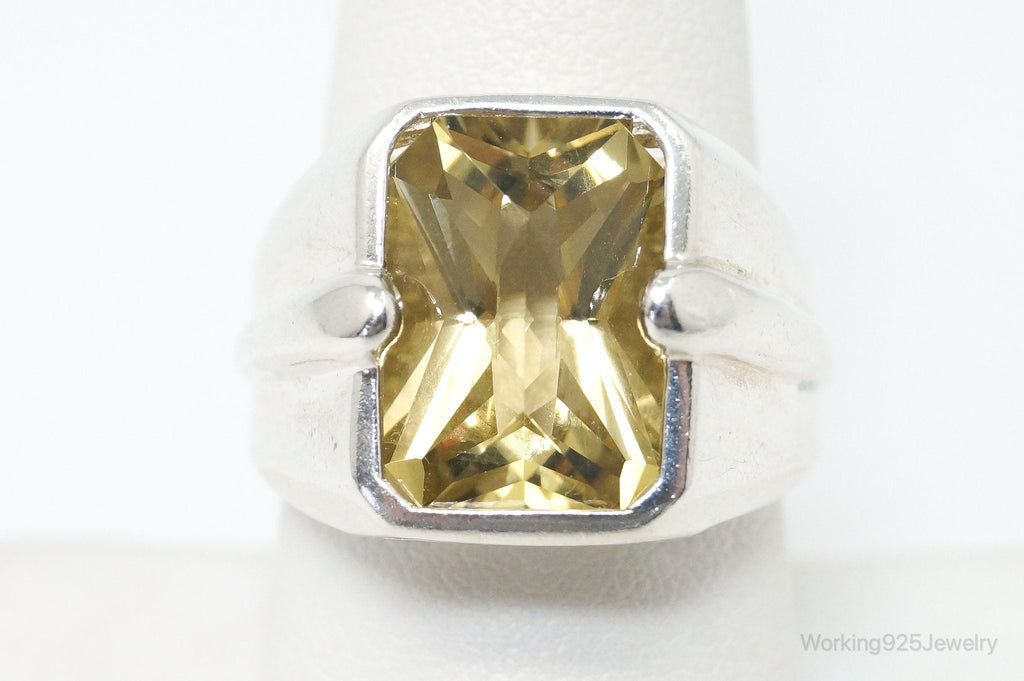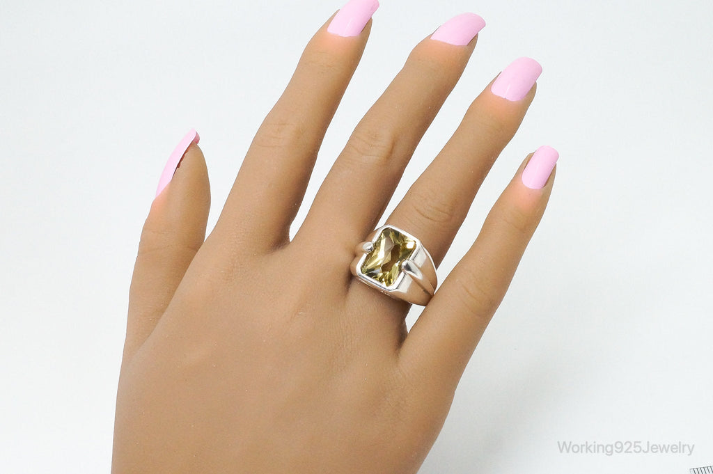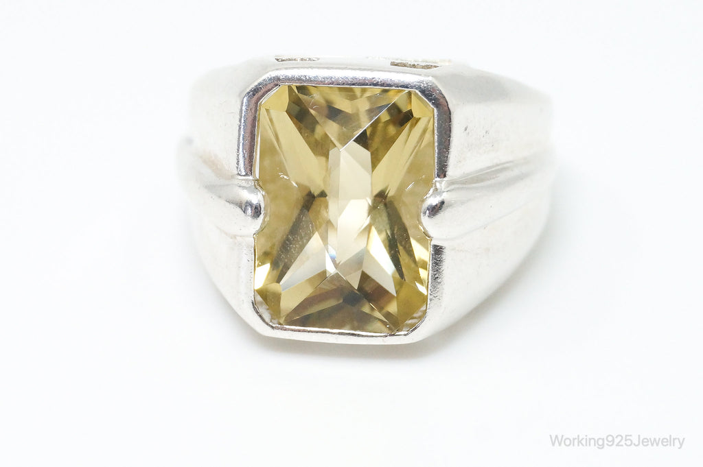 Vintage Art Deco Large Citrine Sterling Silver Ring - Size 8.5