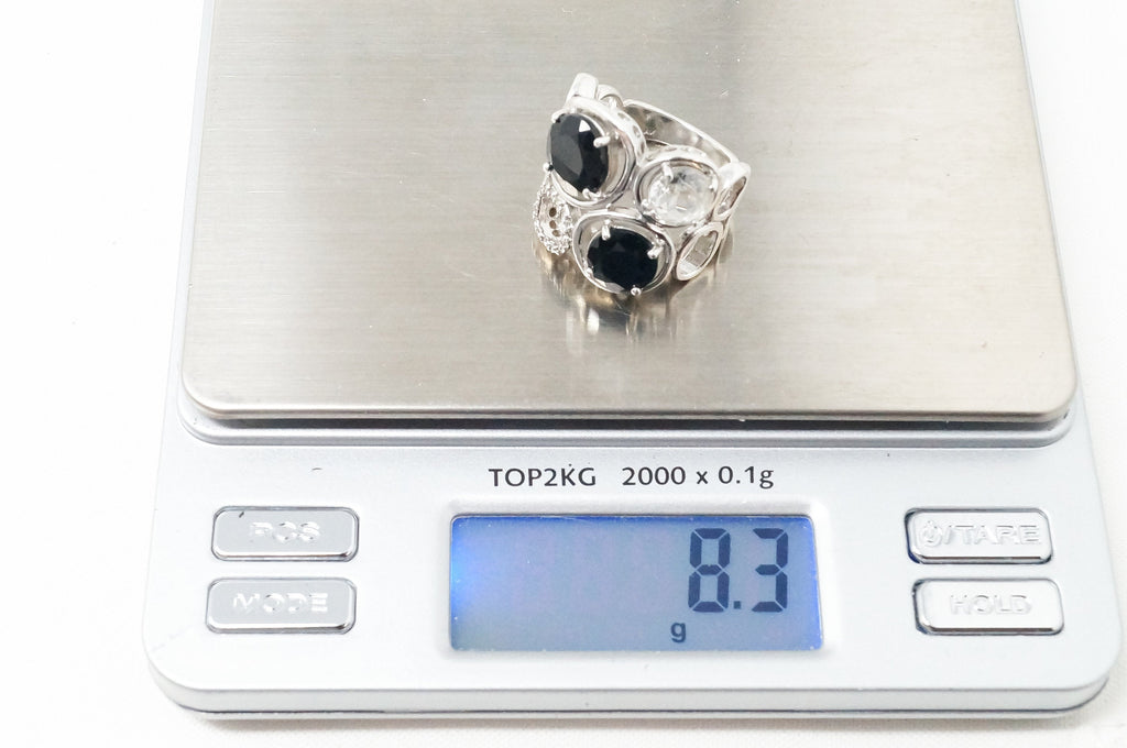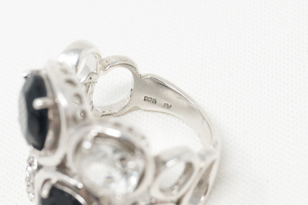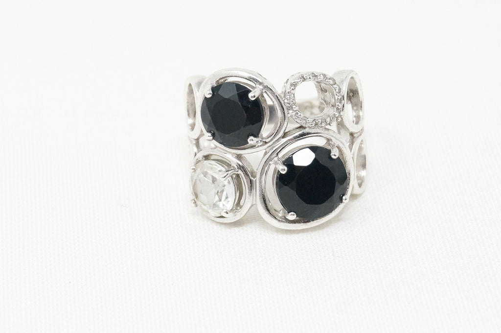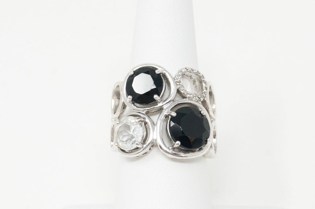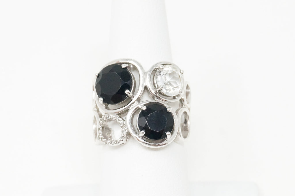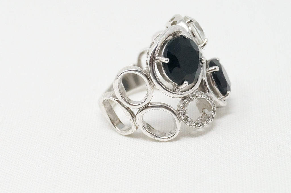 Vintage Art Deco Mid Century Style Black Onyx Cz Sterling Silver Ring - Size 6.5