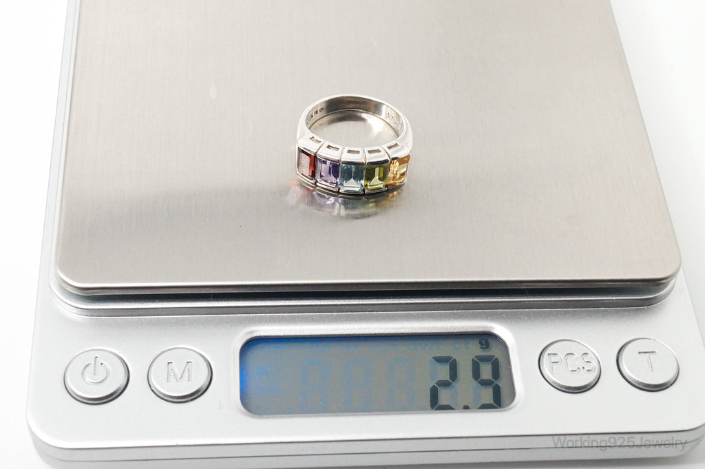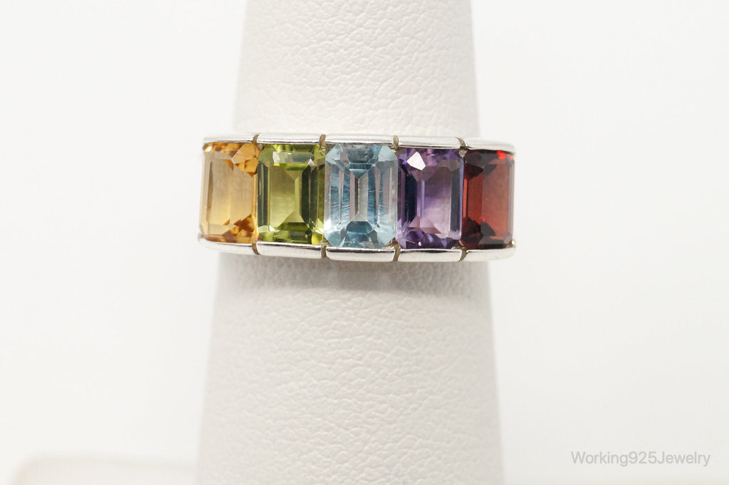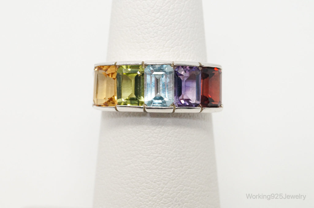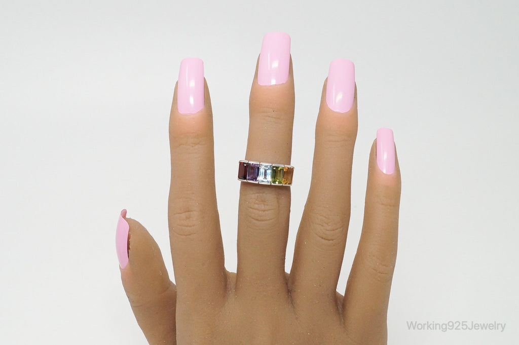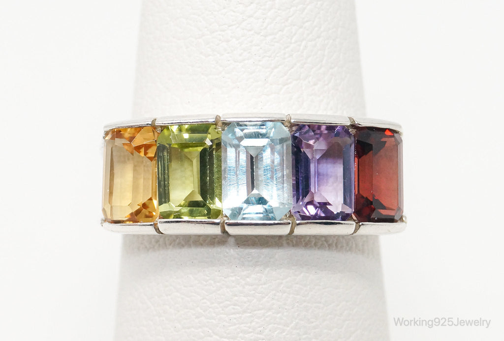 Vintage Art Deco Multi Gem Sterling Silver Ring - Size 5