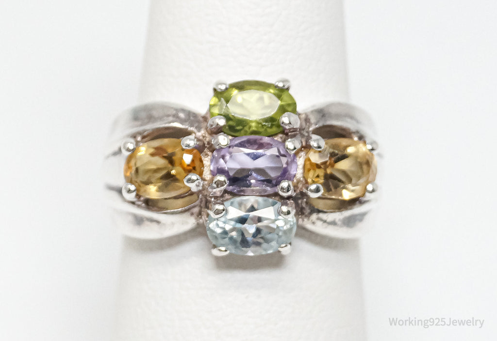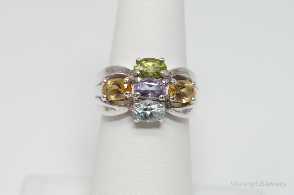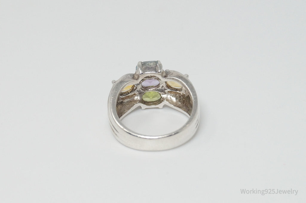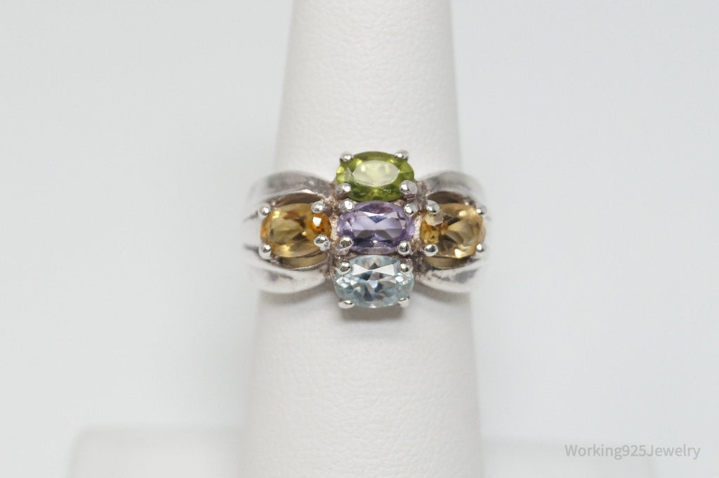 Vintage Art Deco Multi Gem Sterling Silver Ring - Size 8