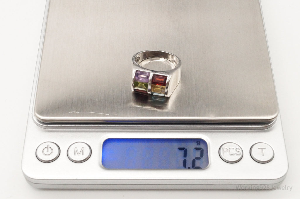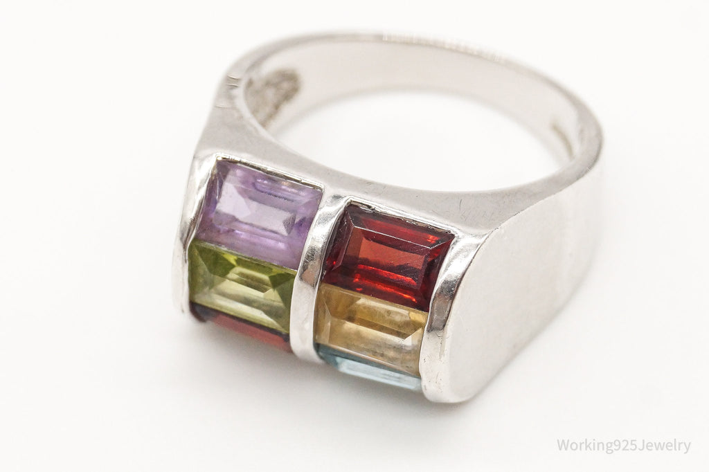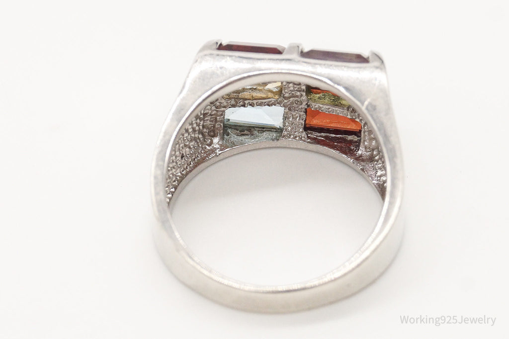 Vintage Art Deco Multi Gemstone Sterling Silver Ring - Size 7.75 -Blue Topaz -Garnet -Citrine -Peridot -Amethyst