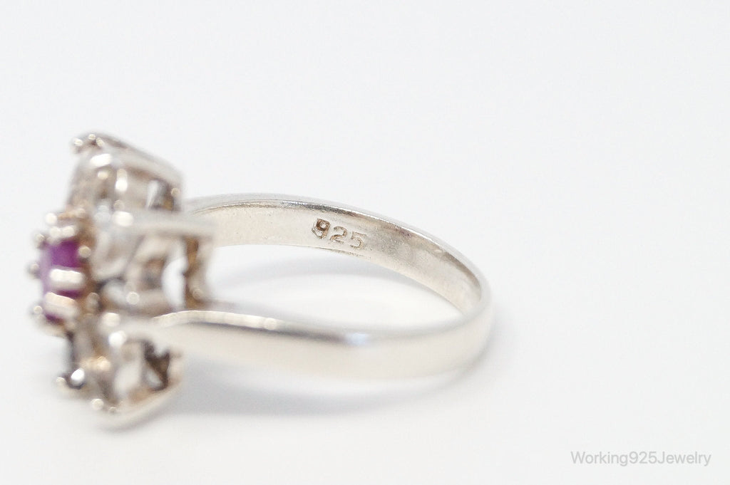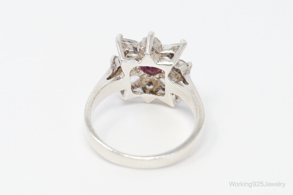 Vintage Art Deco Ruby Cubic Zirconia Sterling Silver Ring - Size 6