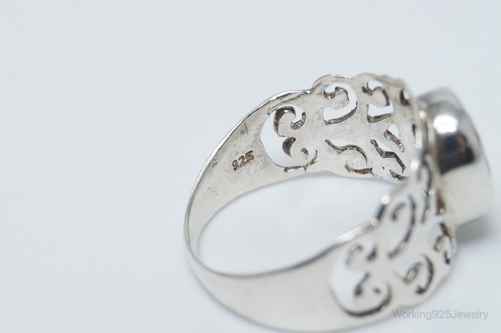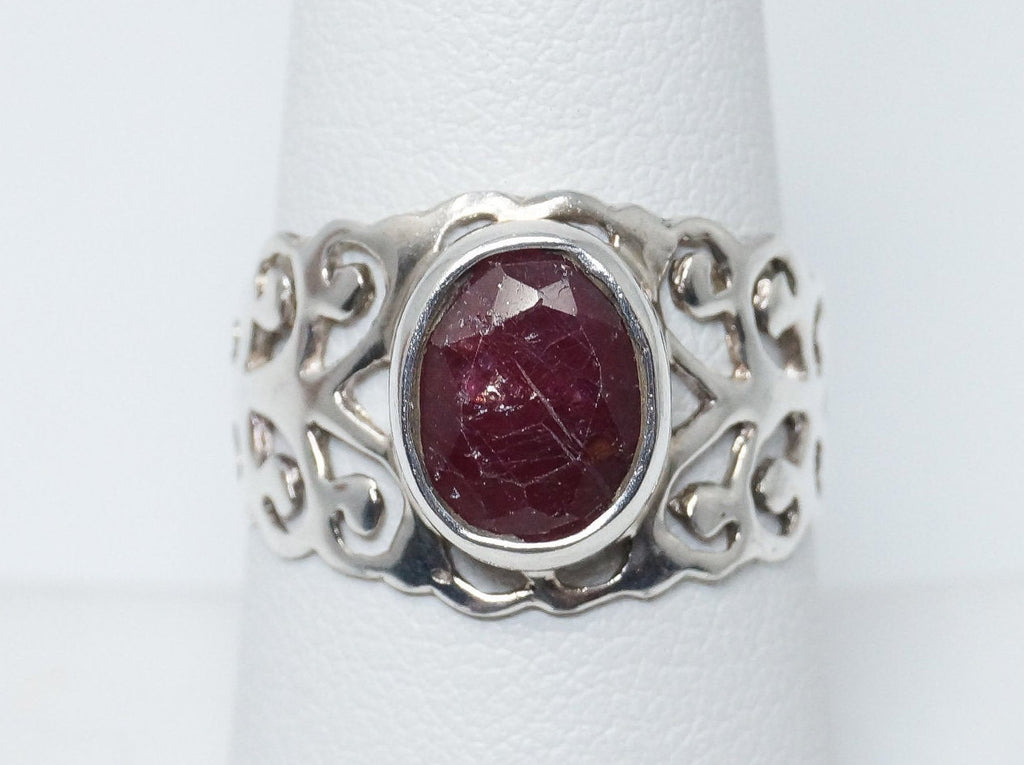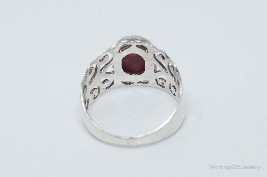 Vintage Art Deco Ruby Scroll Sterling Silver Ring - Size 8