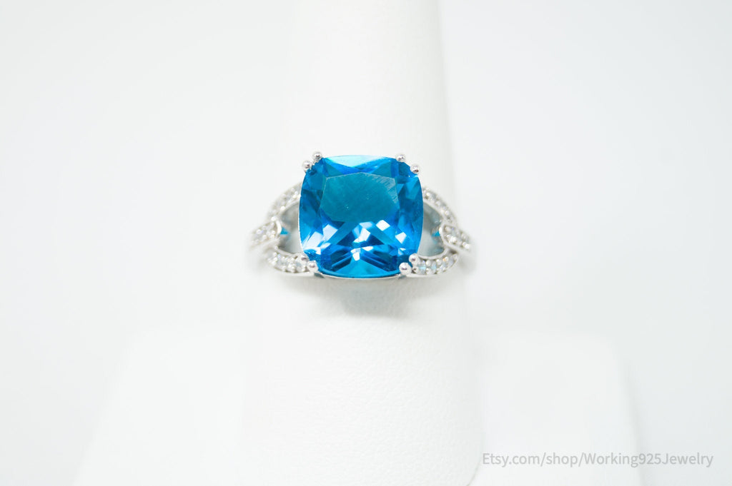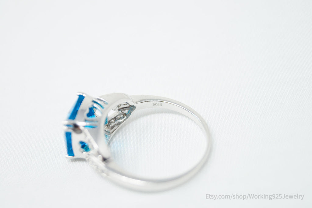 Vintage Art Deco Style Blue Topaz CZ Sterling Silver Statement Ring Sz 8.75