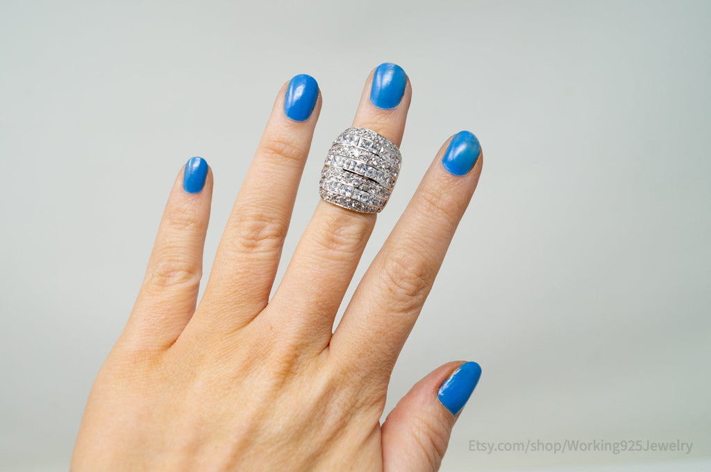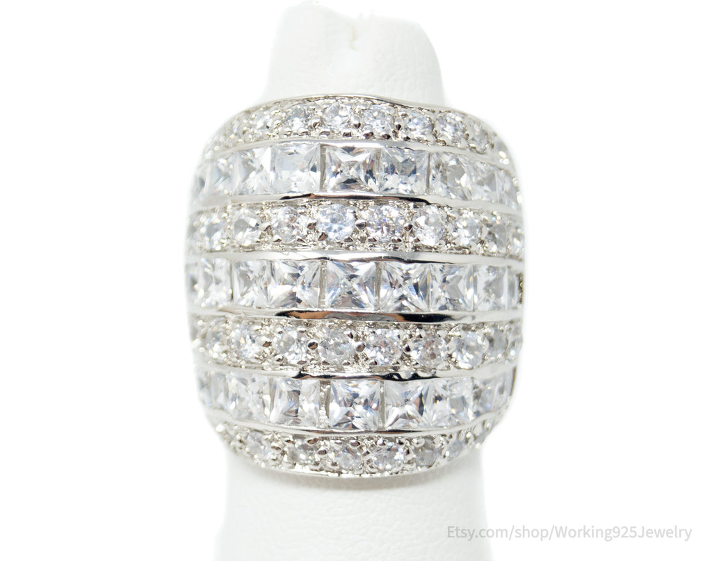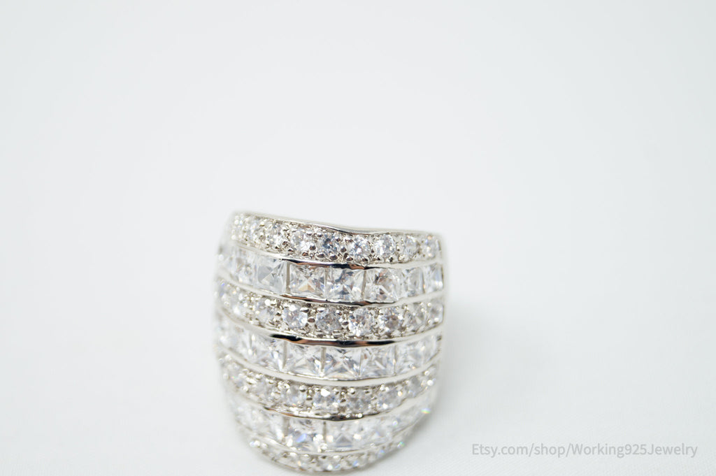 Vintage Art Deco Style Cubic Zirconia Sterling Silver Ring Sz 4.5